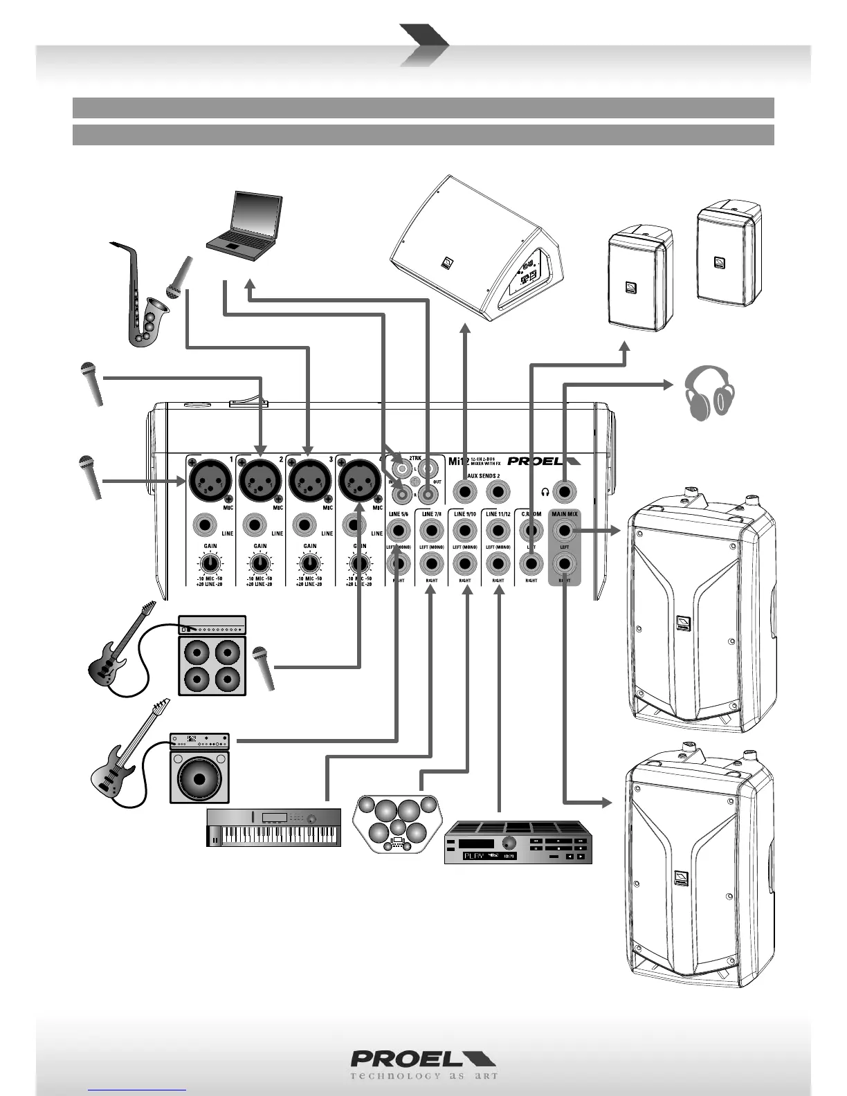 PROEL Mi10 - Mi12 KONFIGURATIONSBEISPIEL; Mi12 EJEMPLO de CONFIGURACIÓN; Mi12 EXEMPLE de CONFIGURATION