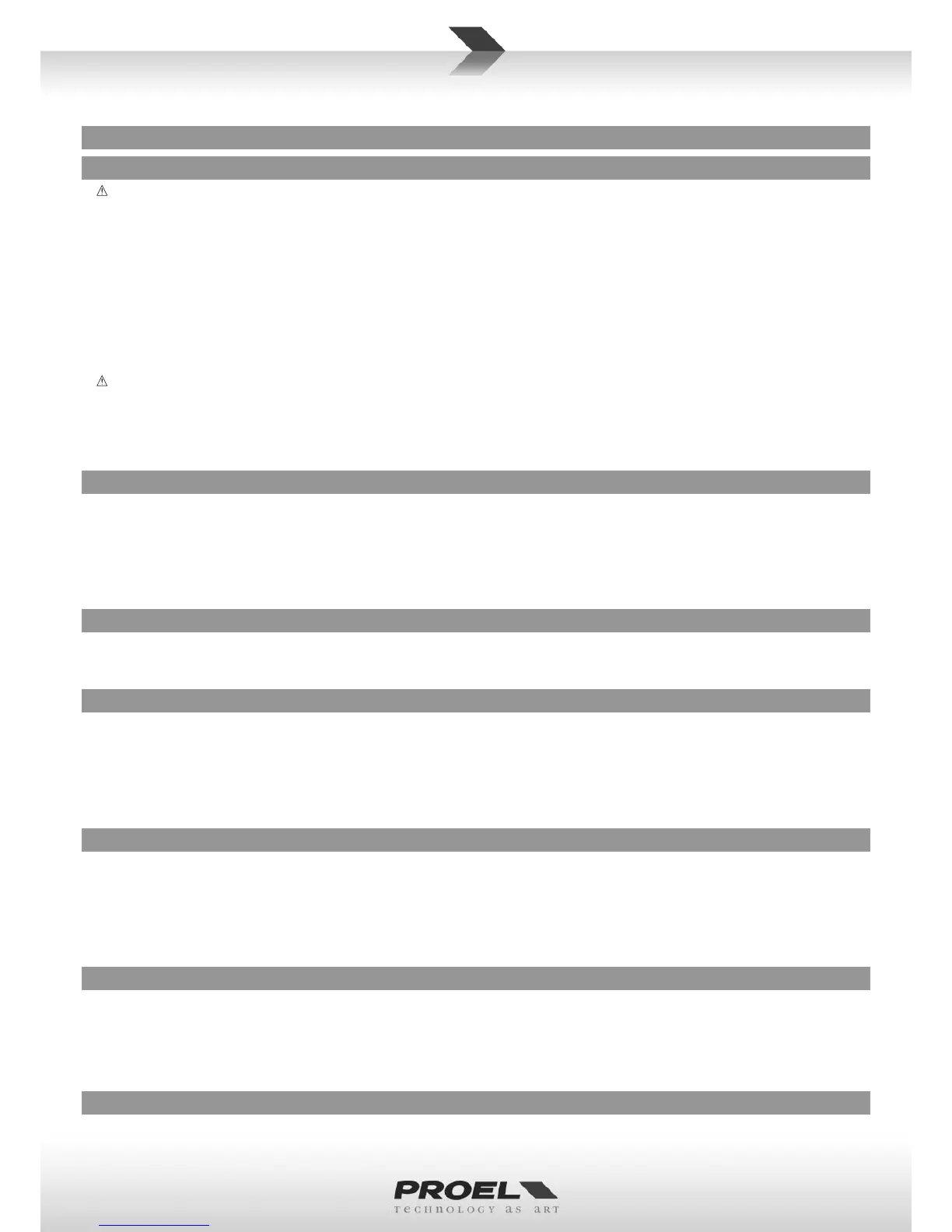 • Non intervenire sul prodo o. Rivolgersi a un centro di assistenza autorizzato Proel.