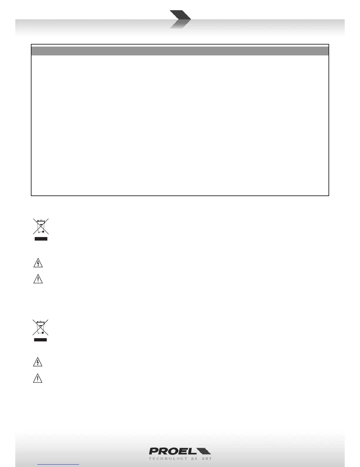 no ce. PROEL assumes no responsibility for the use or applica on of the products or circuits described herein.