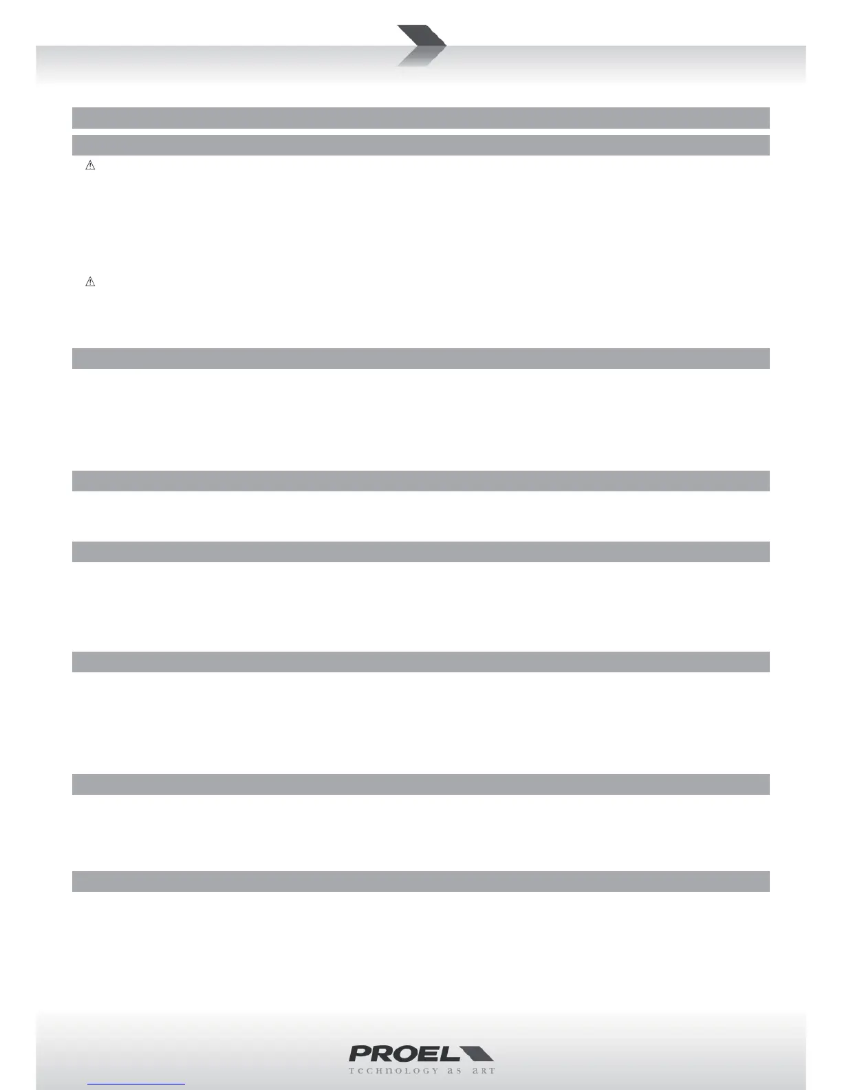 • Proel S.p.A. declines any liability for damages to objects or persons caused by lacks of maintenance, improper use, installa on not performed