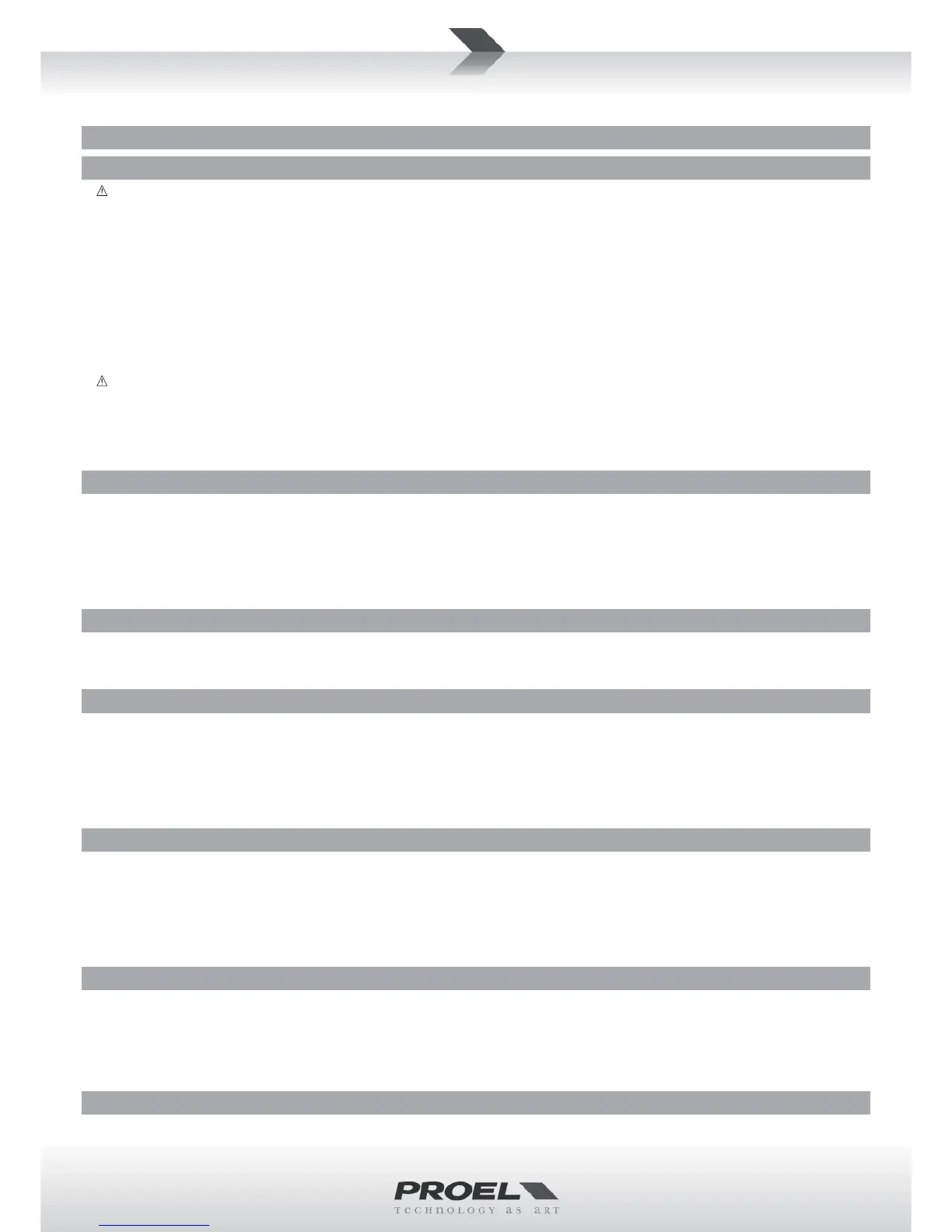 • Proel declina ogni responsabilità per danni a terzi causa da mancata manutenzione, manomissioni, uso improprio o installazione non eseguita