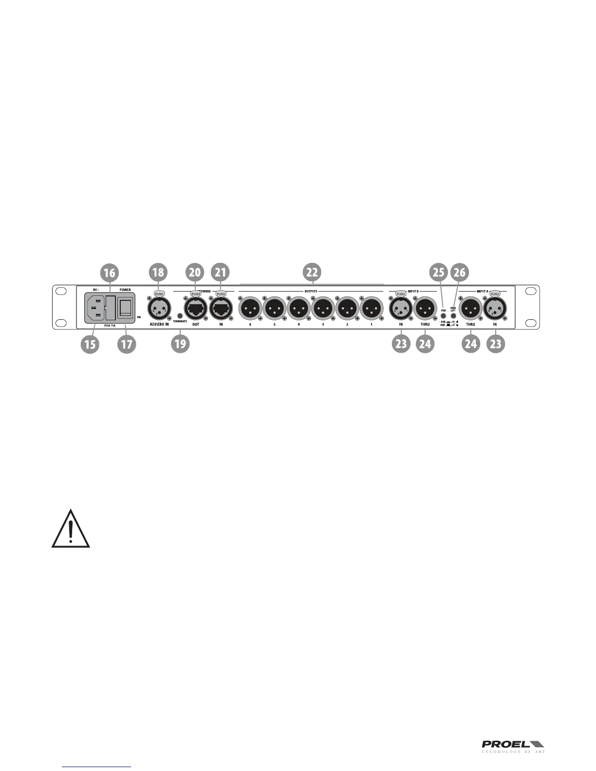 the condition of the A.C. receptacle powering the unit. If the fuse continues to blow, refer to PROEL qualified service personnel.