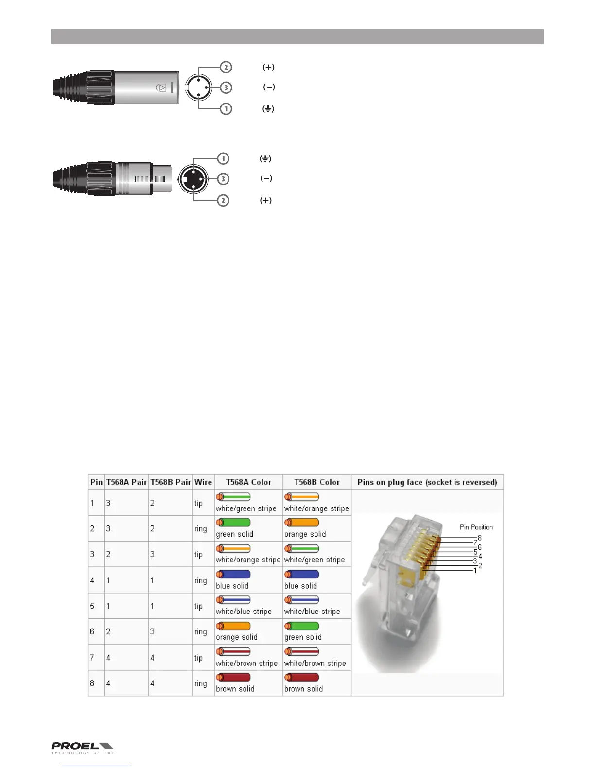 (+), pin 3 cold (-). Cable shielding must be connected to pin 1.