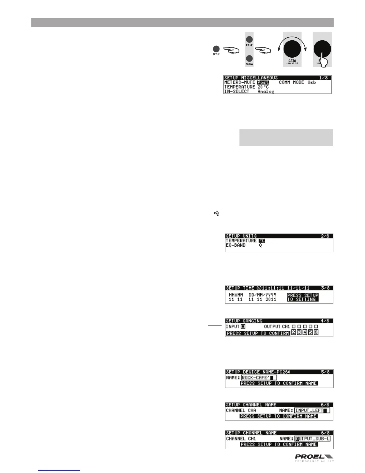 This page is where the PC260 name is set. Push the DATA knob to navigate then