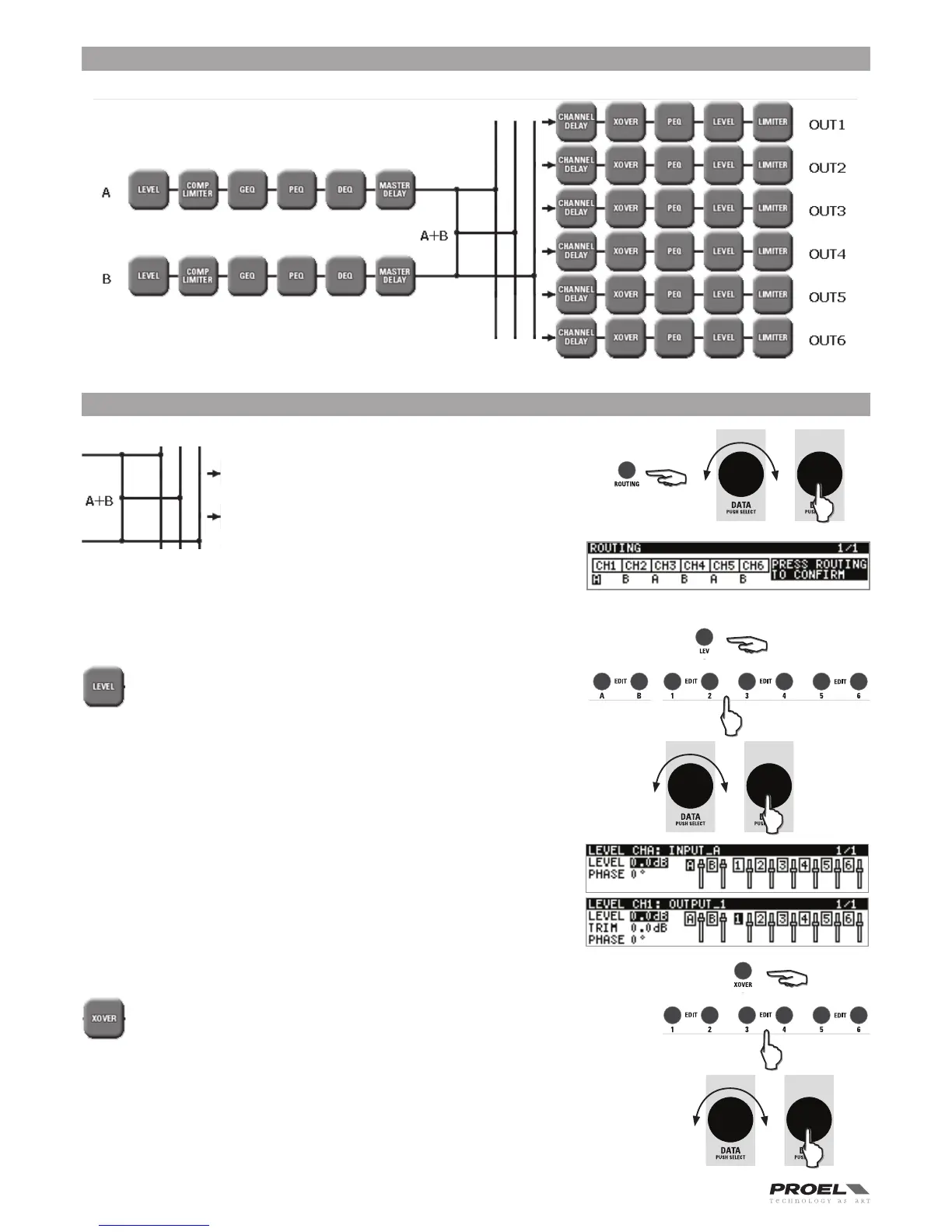 Press the ROUTING button to access, then push the
