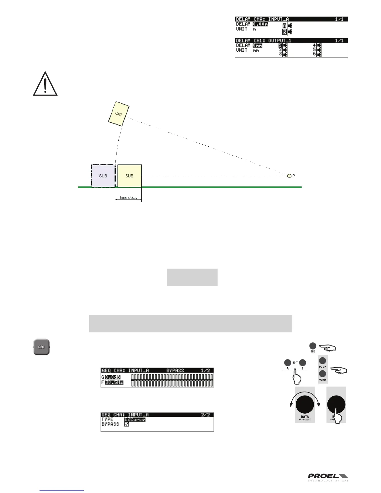 covers a shorter distance that the top in reaching the listener (position P), it is therefore necessary to delay the emission of the sub