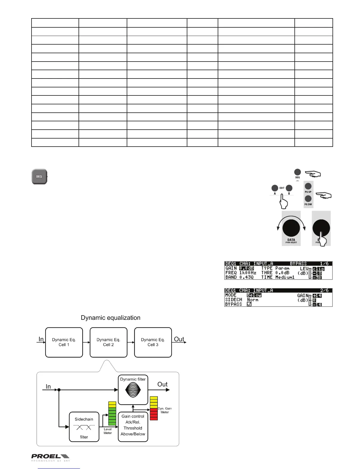 To access the first page of the dynamic EQ section, press the DEQ button and then the EDIT