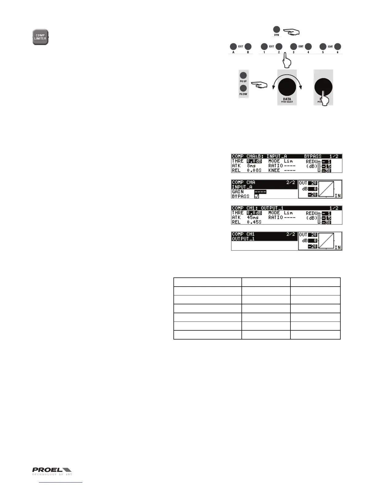 compress or limited as indicated in the dynamic curve. The threshold level is referred to the 0 dB: if the input has no attenuation it