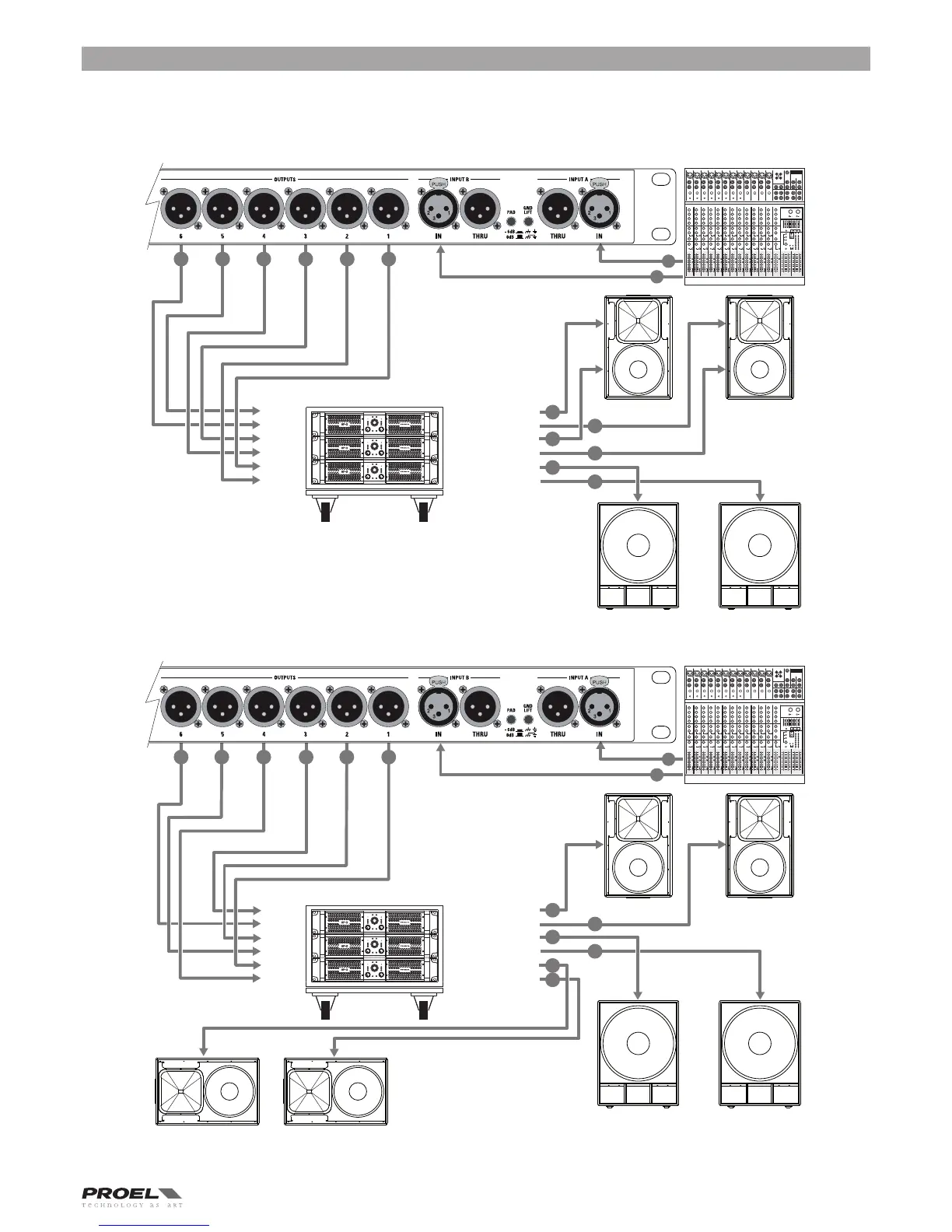 PROEL PC260 - Typical Configurations; PC260 2 X 3 Xover (Advanced Live or Disco System); PC260 2 X 2 Xover + 1 Zone (Advanced Live or Disco Pub System)