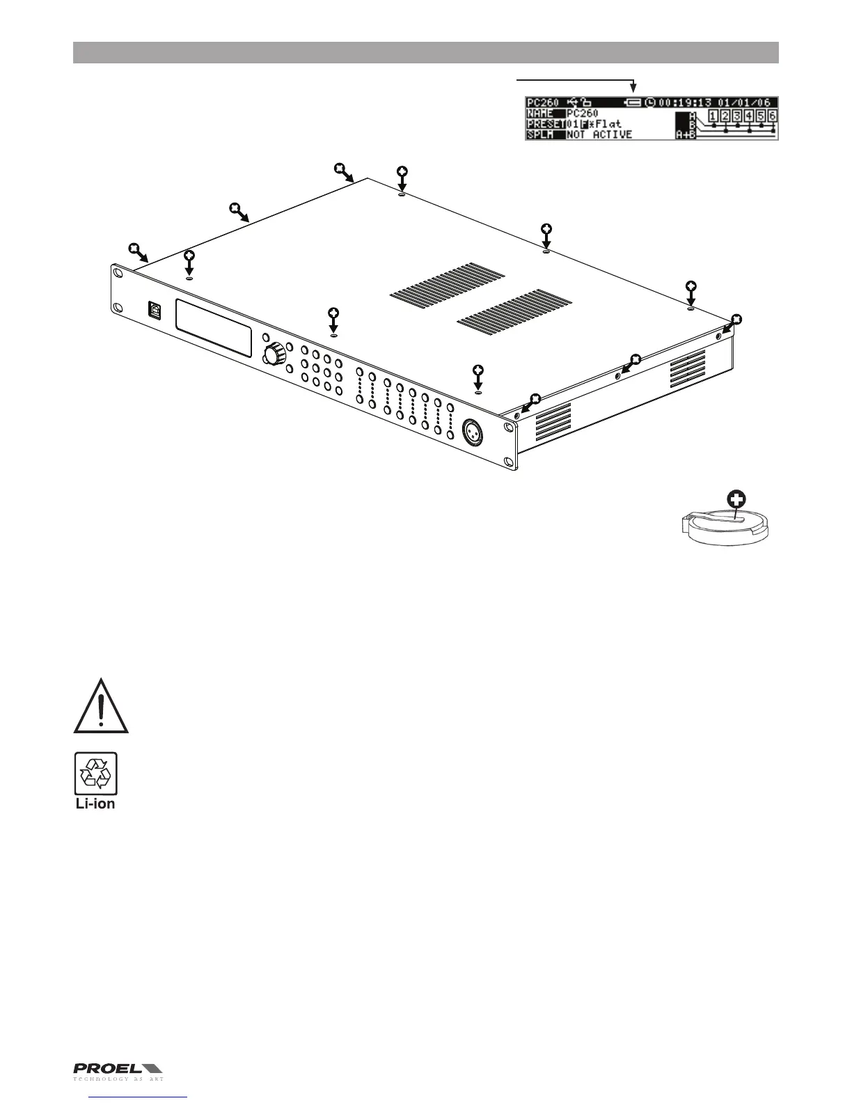 1. DISCONNECT THE PC260 FROM THE MAINS LINE OUTLET.