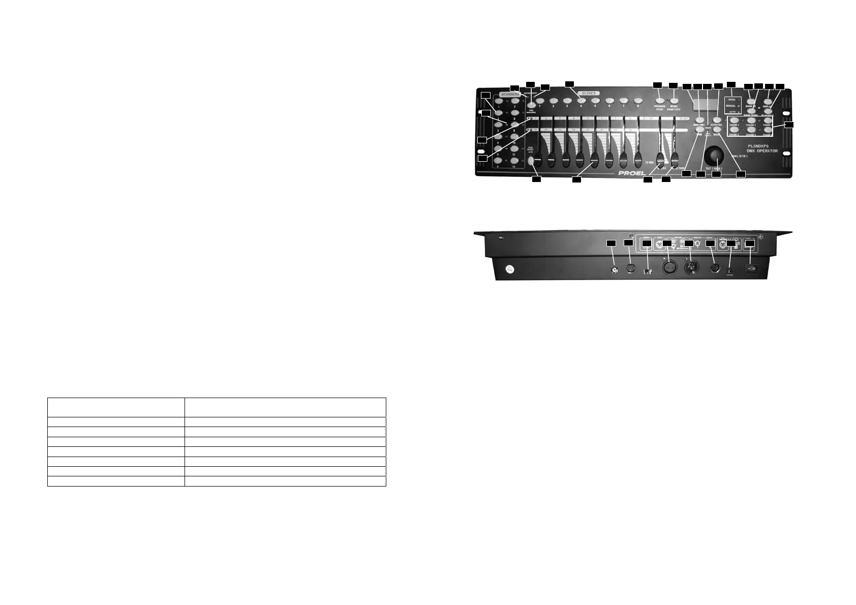 6 chases of scenes. In addition, black-out function can be activated by MIDI signal.