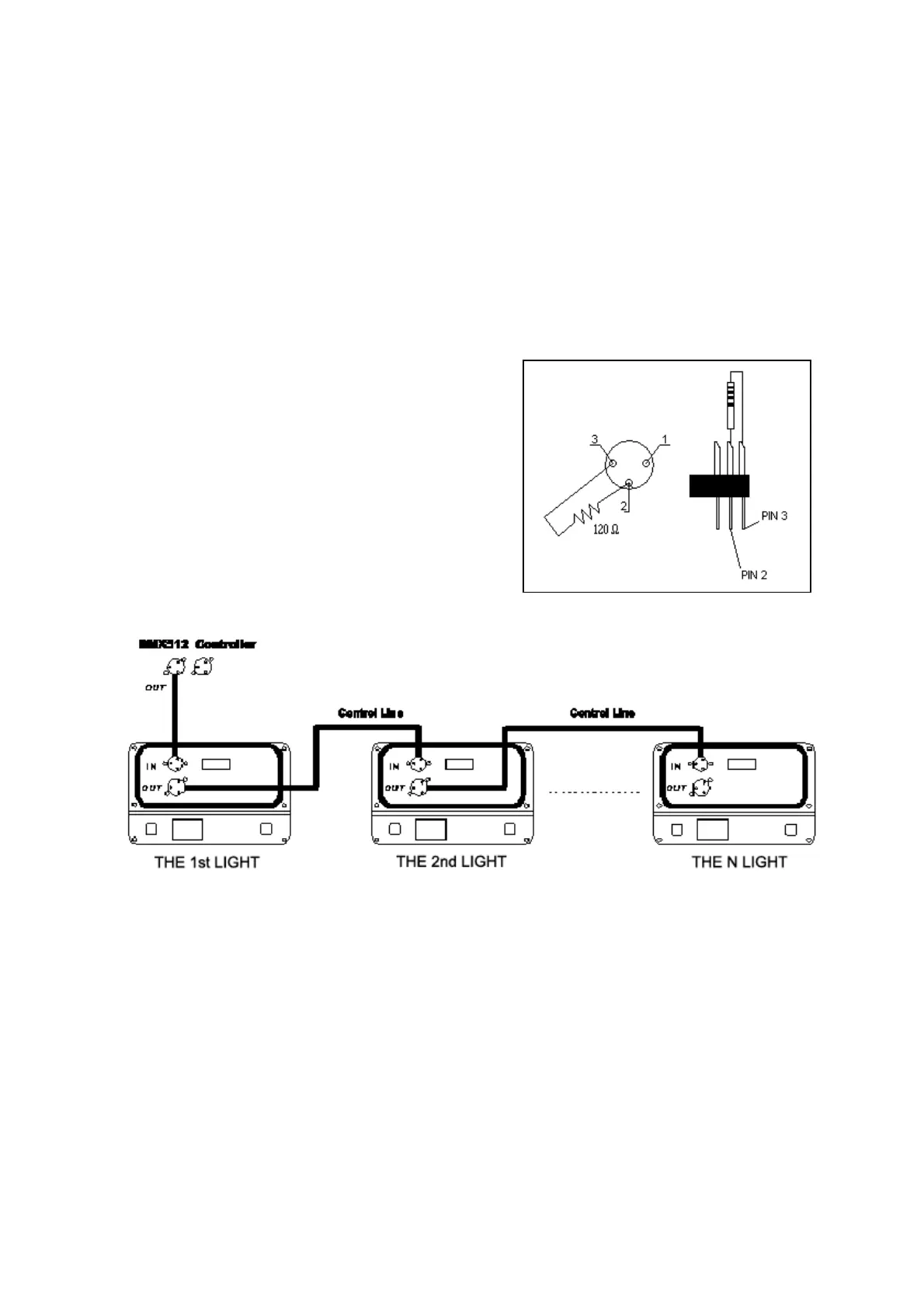 with the signal input port of the second light, and so on, until all lights are
