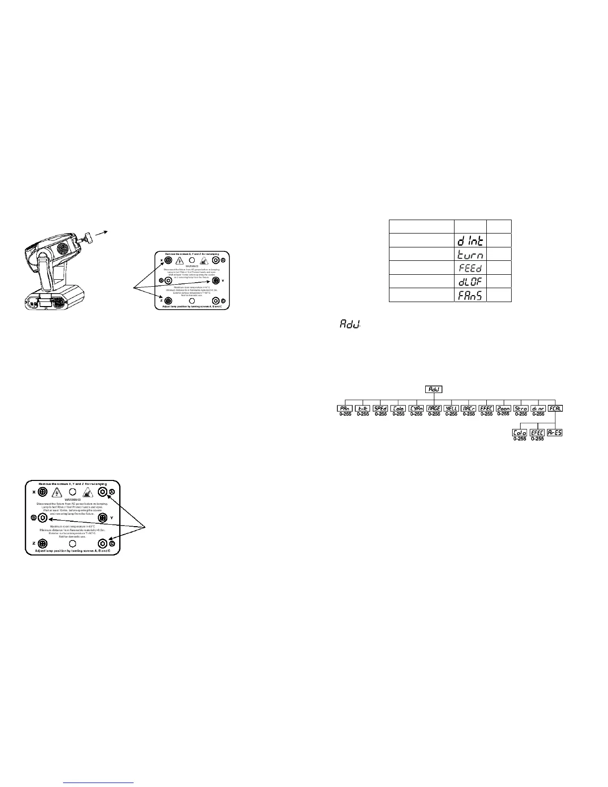 display shows step by step these messages: "Pan”, “Tilt”, “SPEd”, “Colo”, “CYAn”,