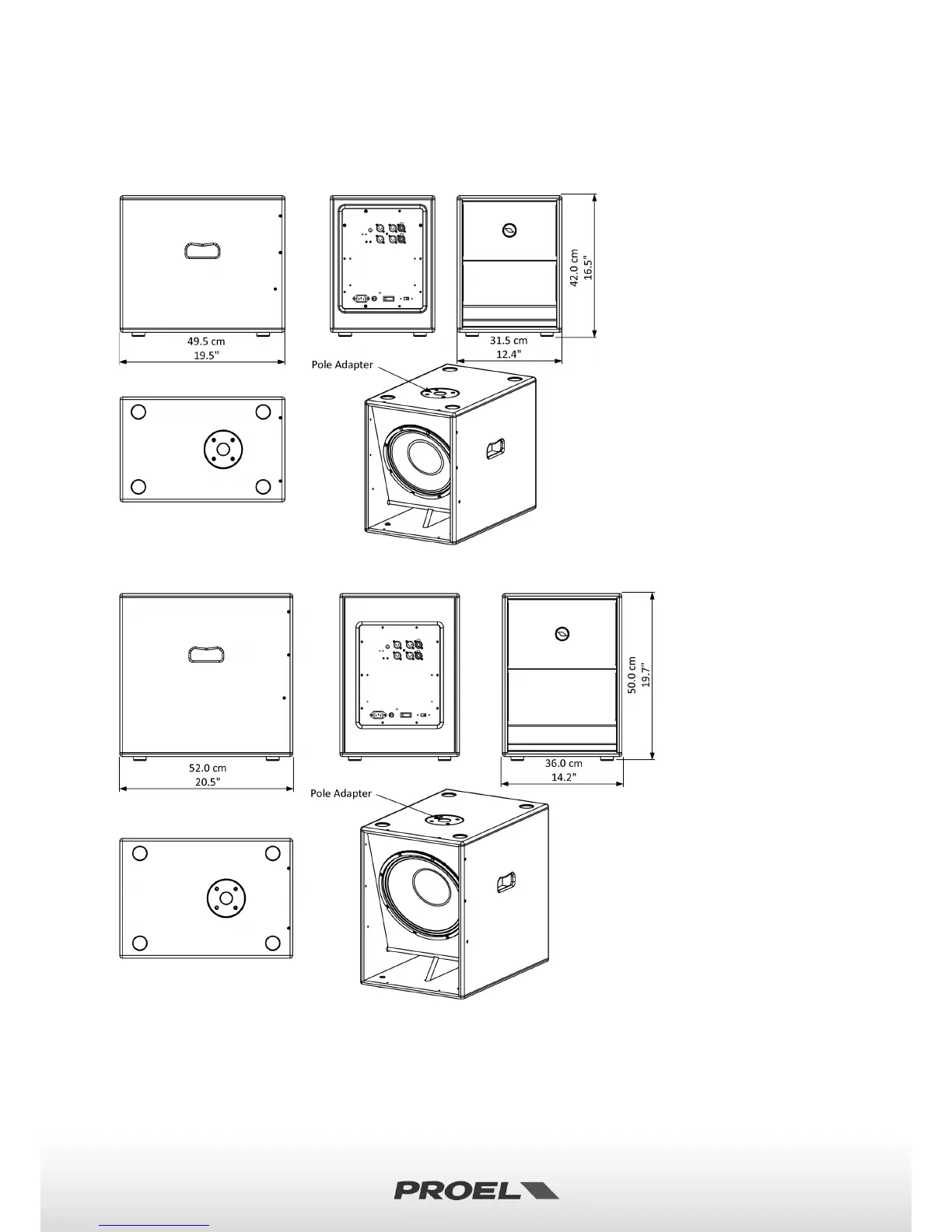 PROEL S15A - Mechanical Dimensions; S10 A; S12 A; Dimensioni Meccaniche