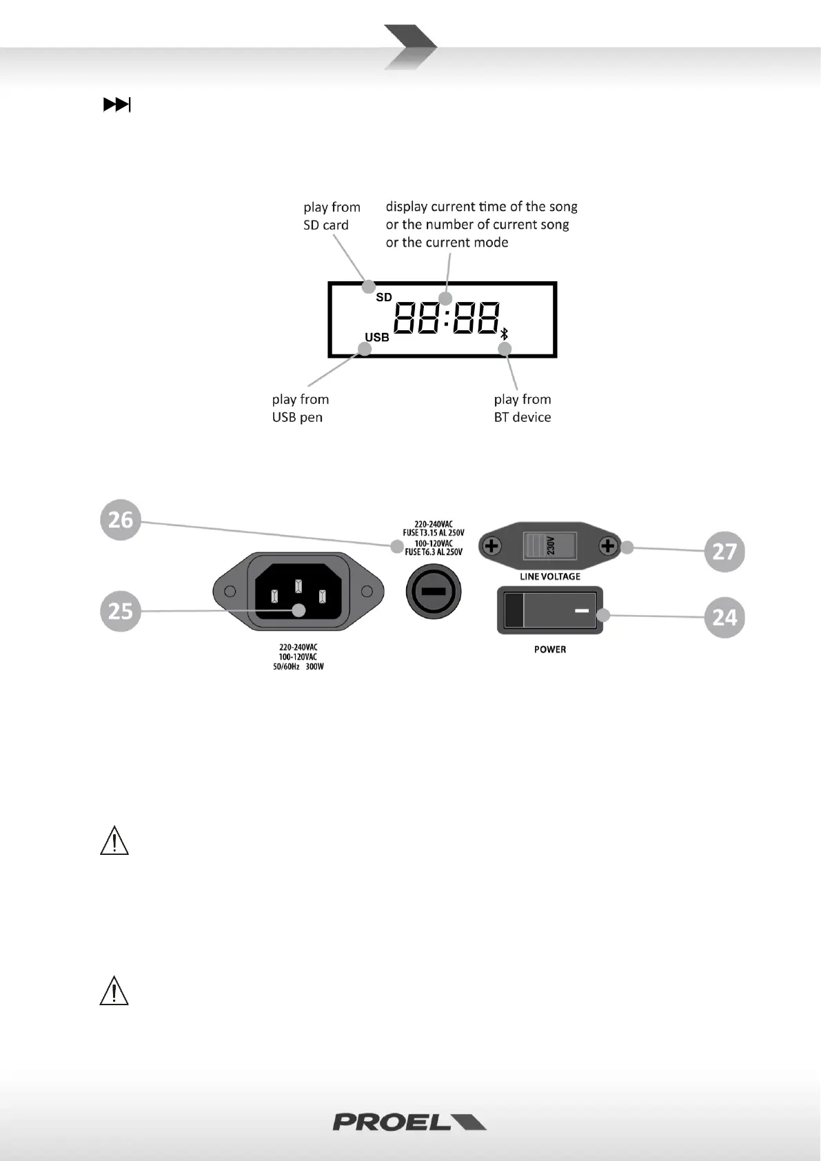 WARNING: an incorrect setting of AC LINE VOLTAGE could damage seriously the internal