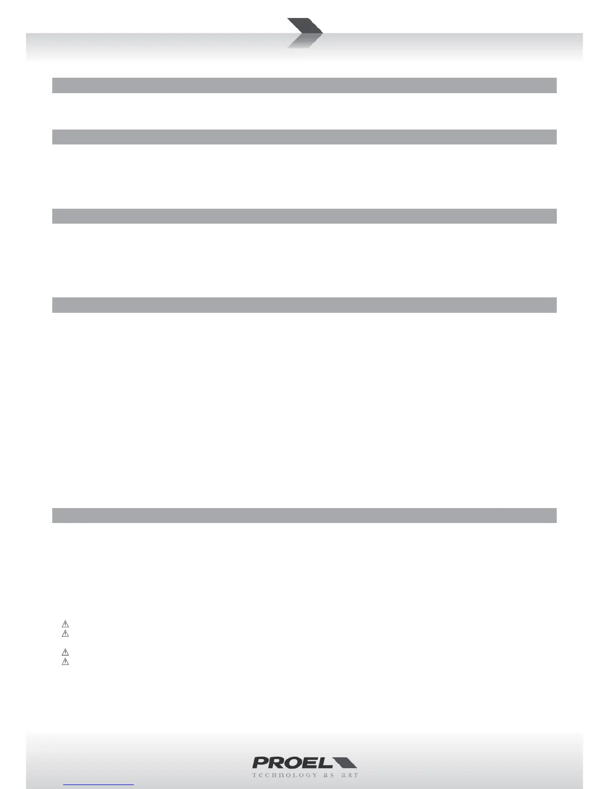 Proel S.p.A. declines any liability for damages to objects or persons caused by lacks of maintenance, improper use, installa on not performed