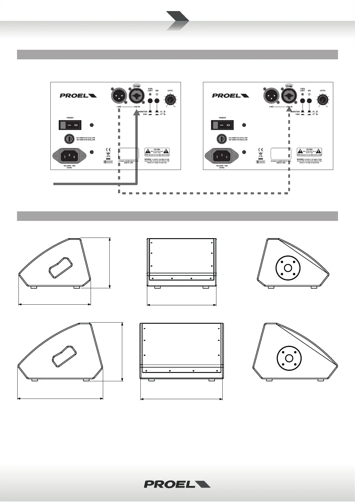 PROEL WX8A - Connection Example (Fig.3); Dimensions; Esempio Collegamento (Fig.3); Dimensioni