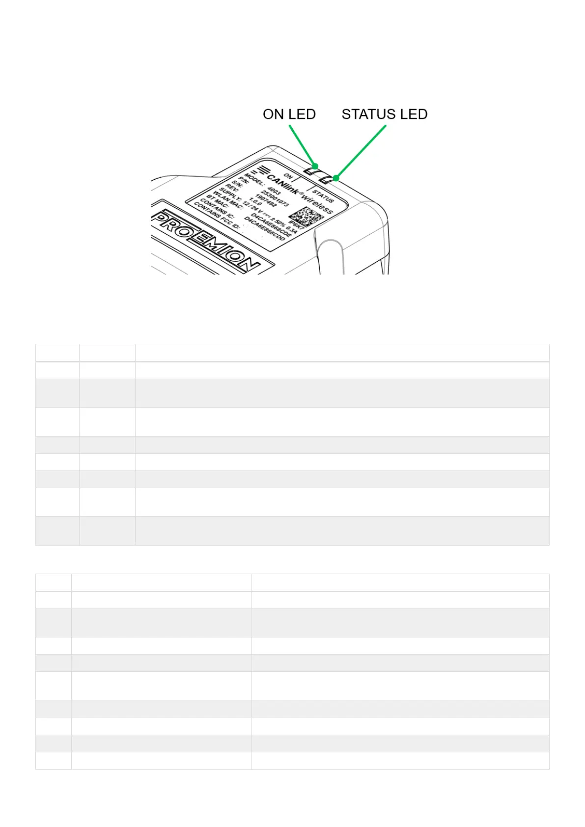 Table 15. STATUS LED