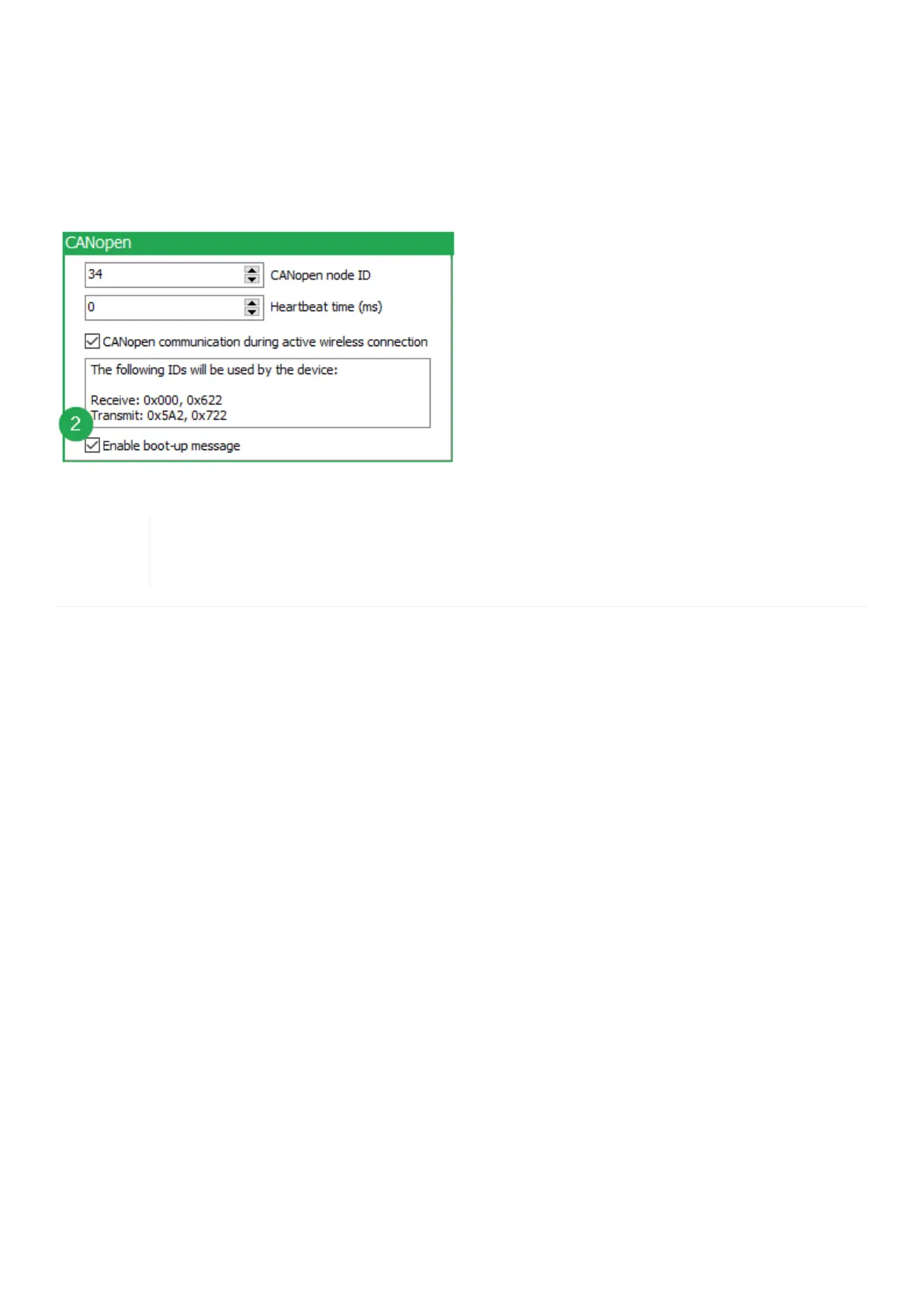 Directly after startup, the device optionally transmits a CANopen boot-up message with its own node ID.