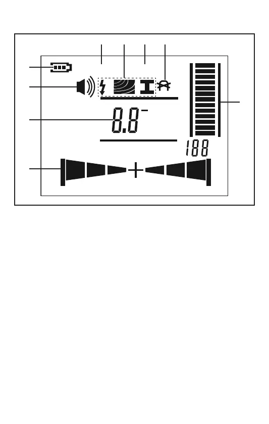 16. Tunnistussyvyyden näyttöalue. Tämä syvyys tarkoittaa etäisyyttä tunnistusalueen