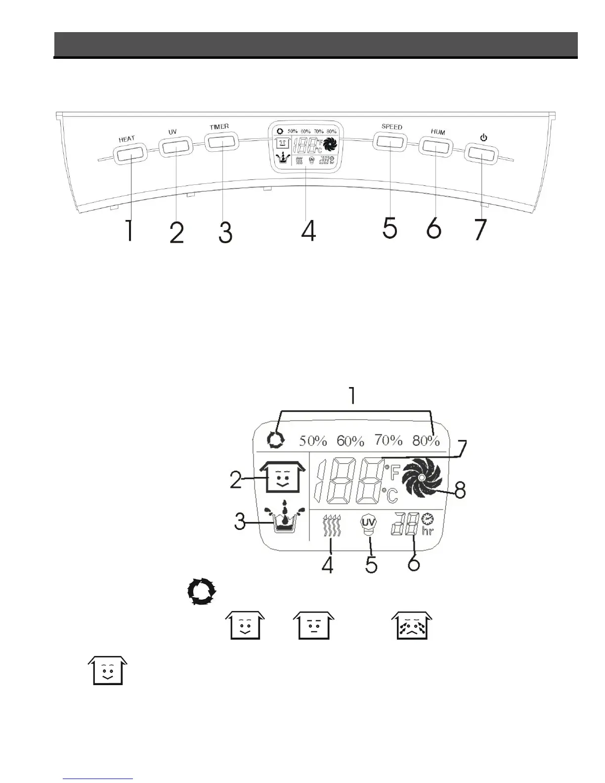 1 Mitruma displejs: pastāvīga susināšana, 50 %, 60 %, 70 %, 80 %