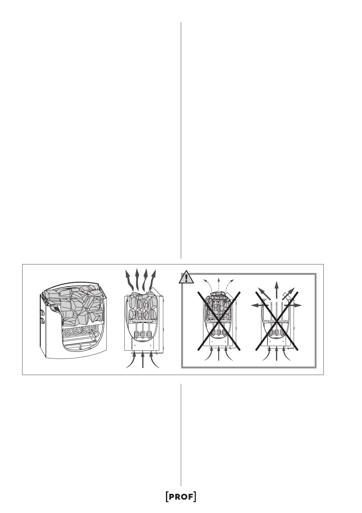 • Kila inte in stenar mellan värmeelementen.