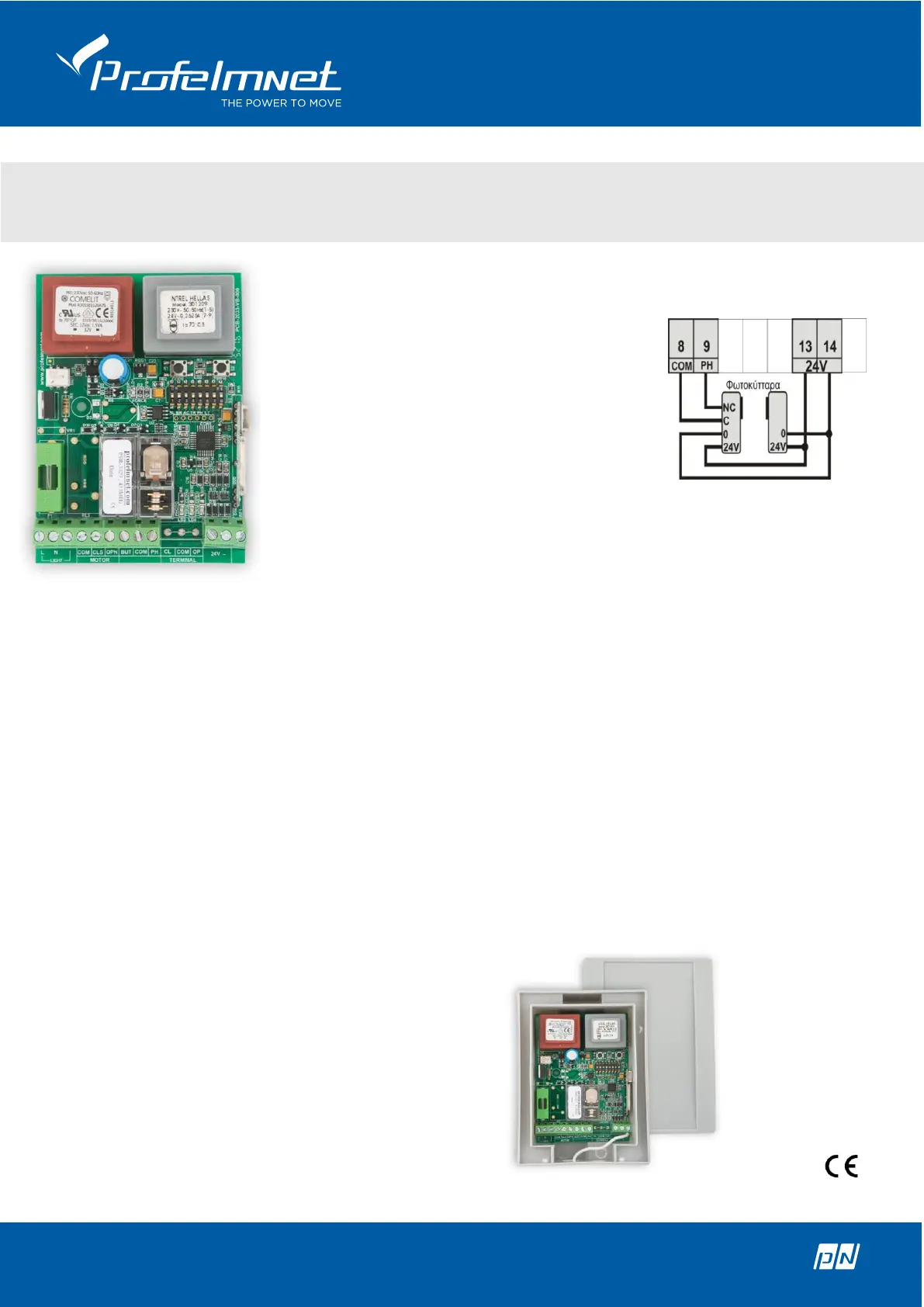 Connect the photocell contact and power supply 24VAC according to the