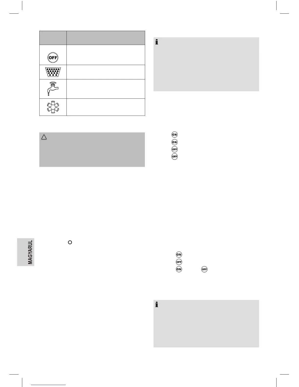 ON / OFF / TIME / SET gombokat a funkciók végrehaj-