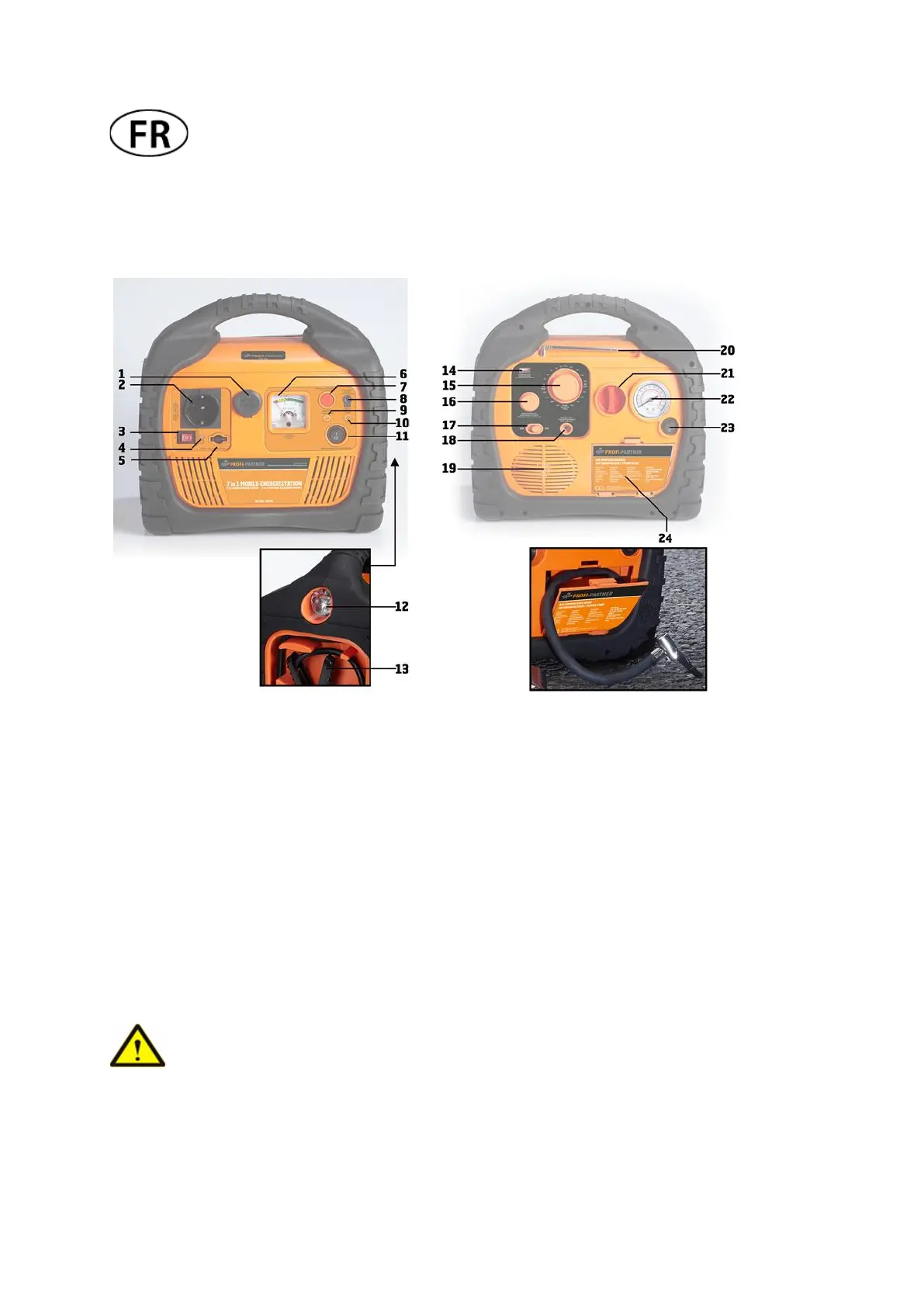 10. Indicateur de polarité inverse 23. Interrupteur pour le compresseur d'air