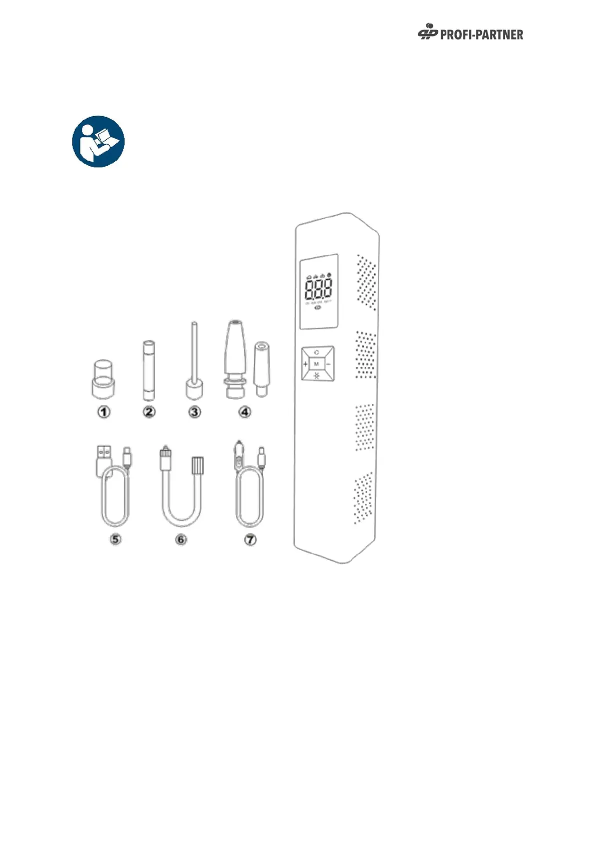 motorbikes, balls, inflatable toys. It also serves as a tyre pressure gauge. Keep out of the reach