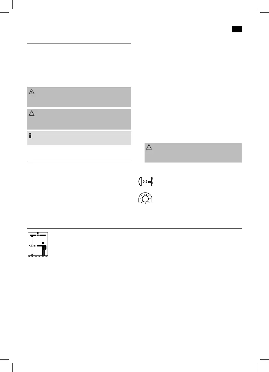 Installeer de ventilator met de bladen ten minste 2,3 meter