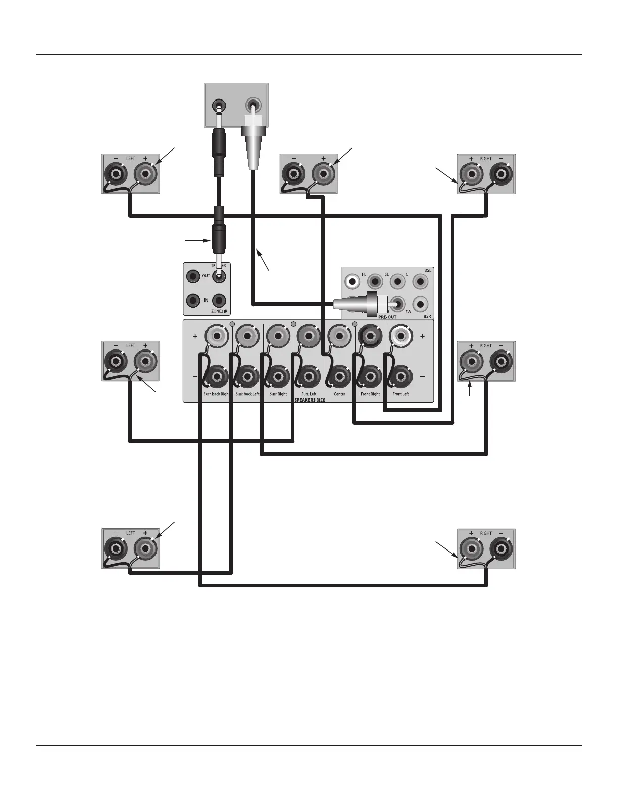 For information on Zone 2 speaker connections, see section: Multizone Conguration.