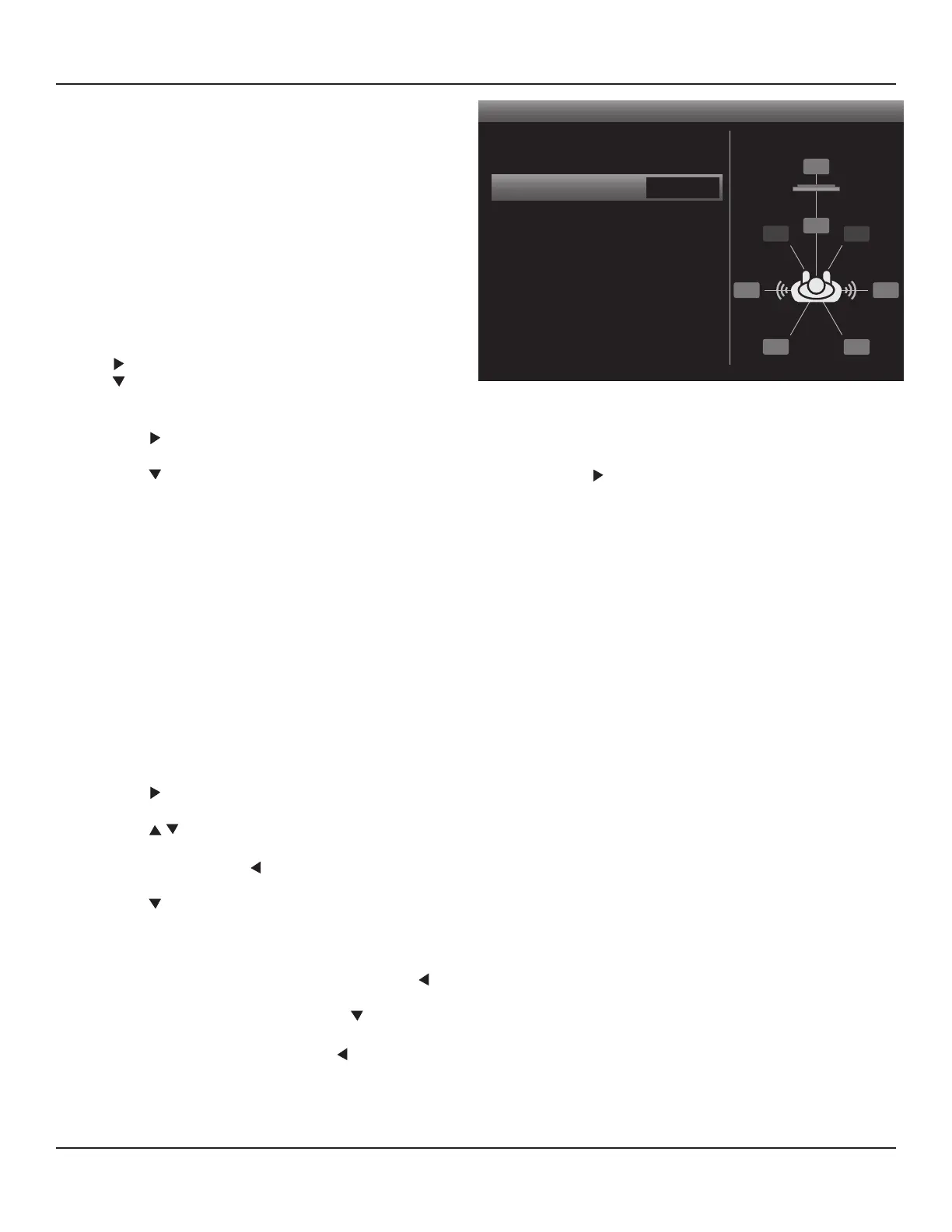 7. If continuing in Speaker Setup, press to move the highlight bar to Speaker Levels and proceed to the next section.