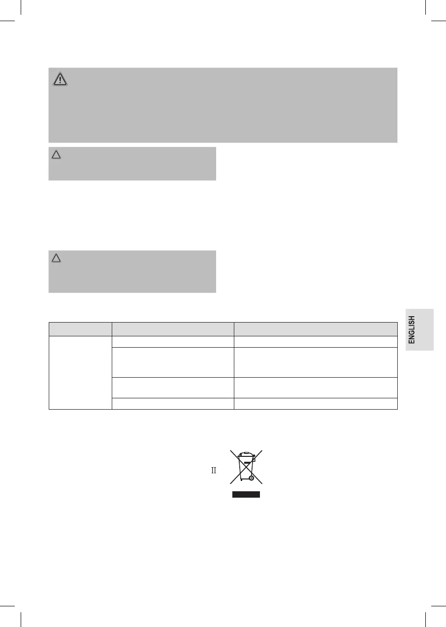 • Never immerse the appliance in water for cleaning. This might