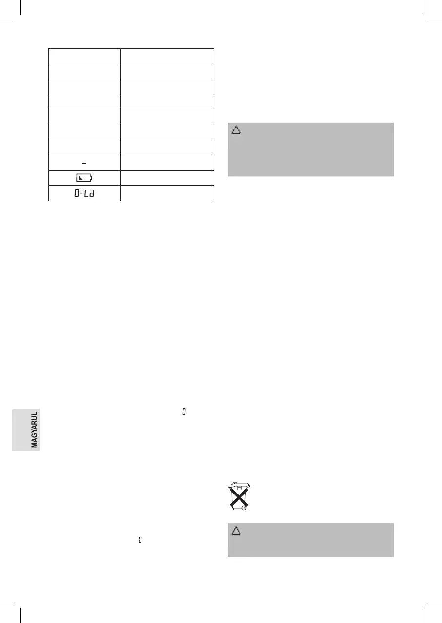 után automatikusan kikapcsolja a mérleget.
