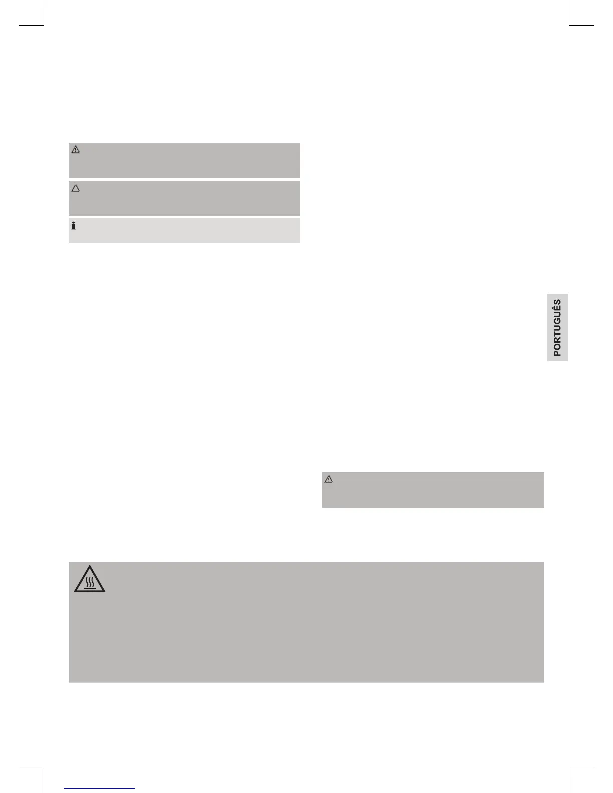 A temperatura das superfícies acessíveis pode ser muito elevada durante e após a utilização do aparelho.