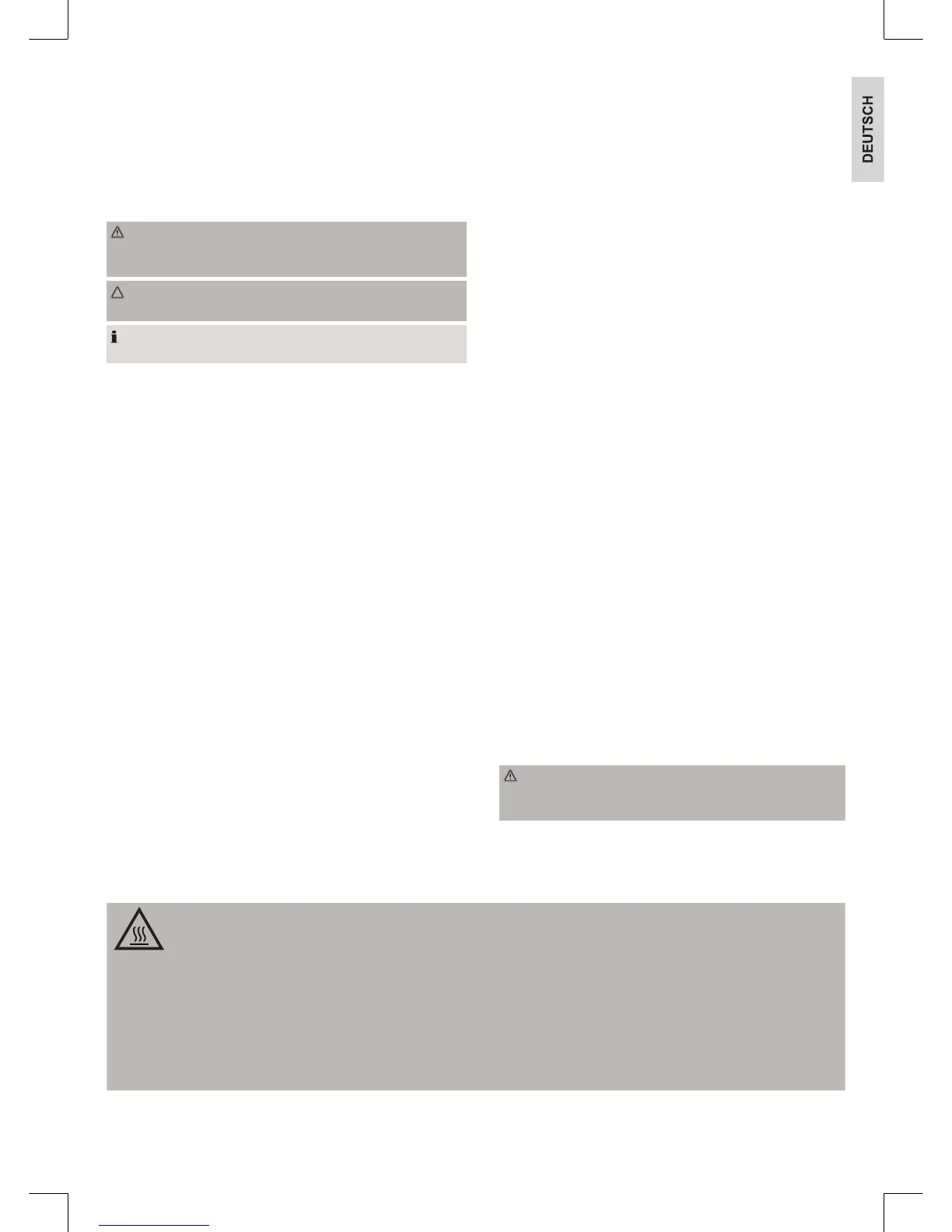 Während des Betriebes und danach kann die Temperatur der berührbaren Oberäche sehr hoch sein.