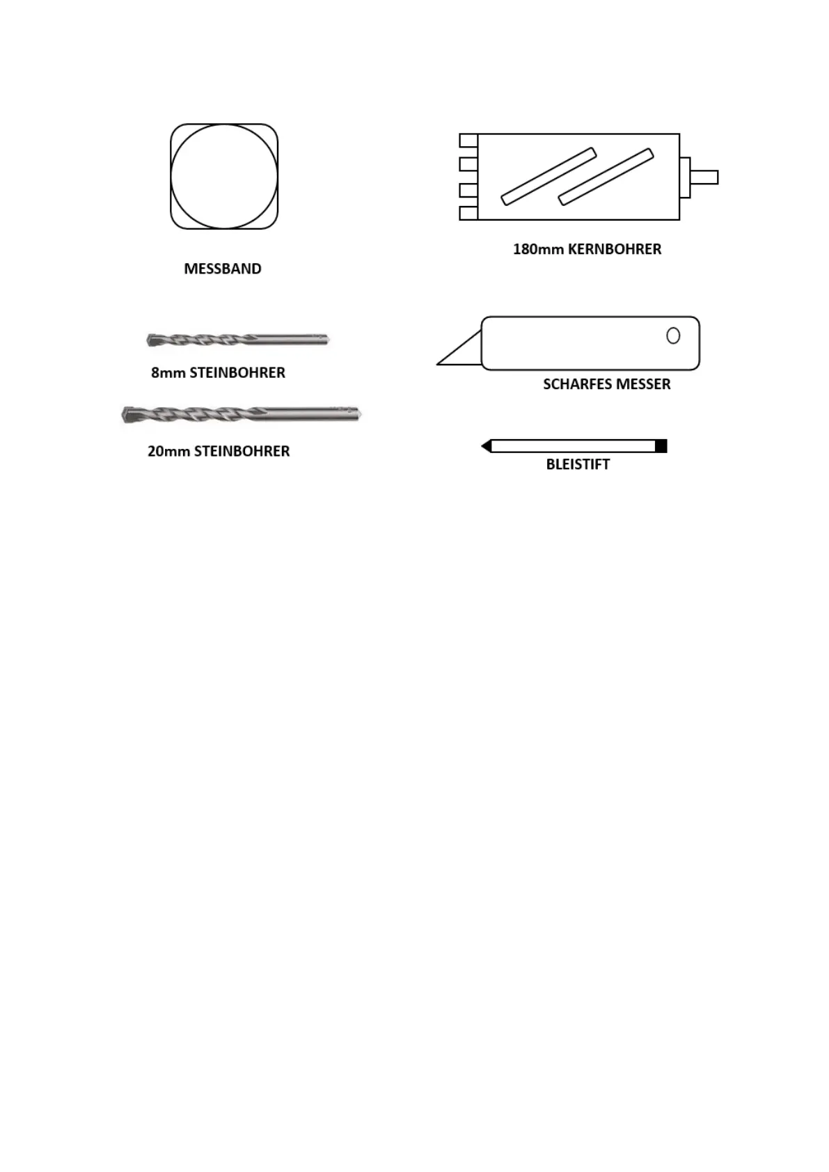 ACHTUNG: Vergewissern Sie sich vor Beginn der Installation, dass Sie alle erforderlichen Geräte