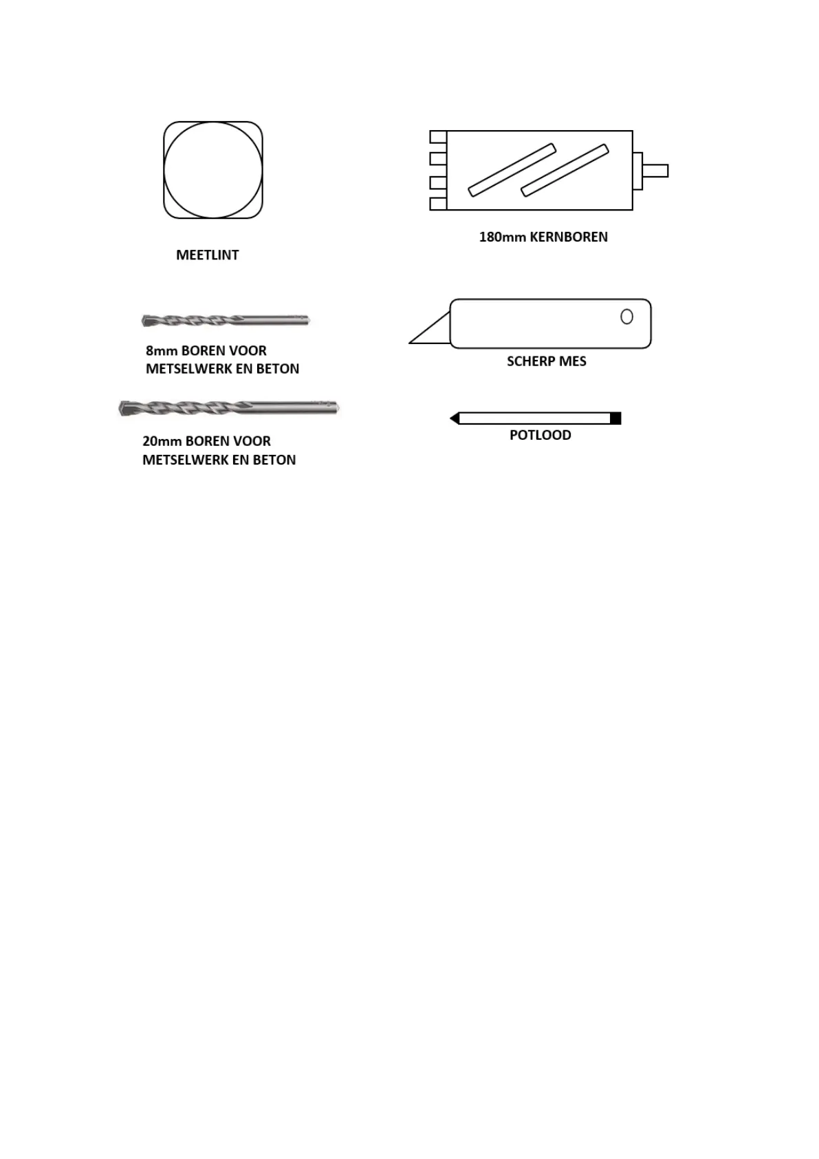 OPGELET: Alvorens met de installatie te beginnen dient u ervoor te zorgen dat u over al het benodigde