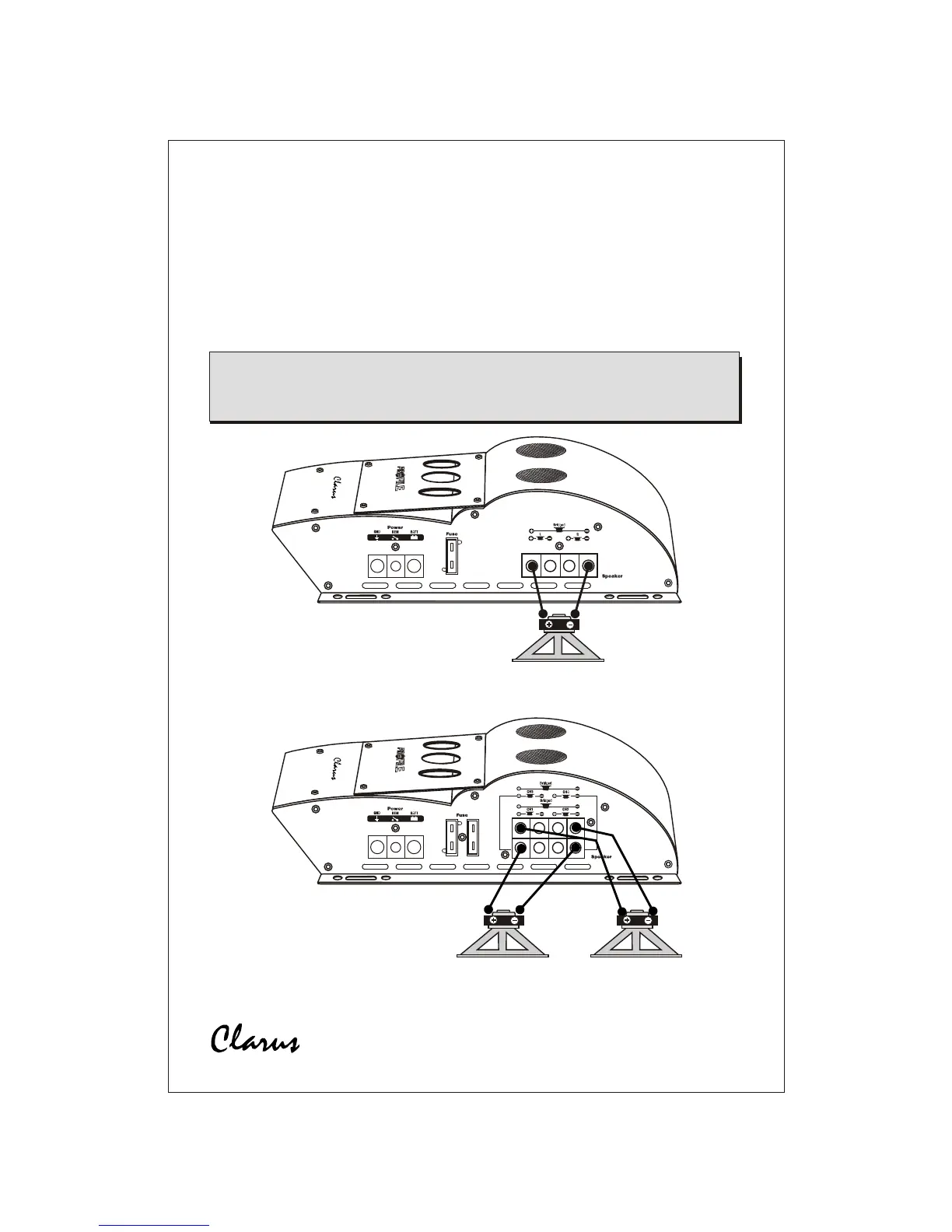 The Clarus amplifiers are capable of being bridged in a mono configuration. This feature allows