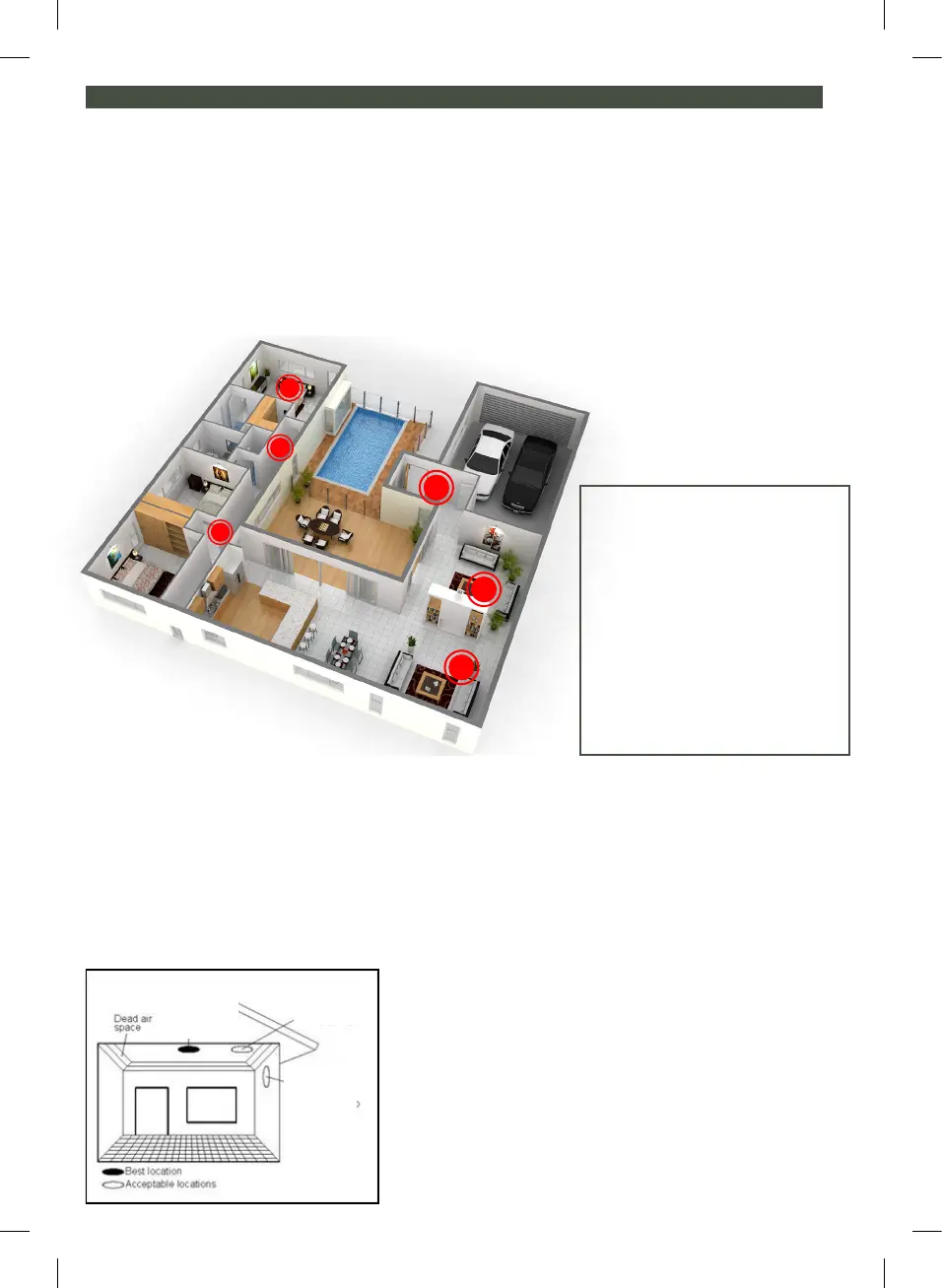 • Montieren Sie den Rauchmelder nicht in der Spitze