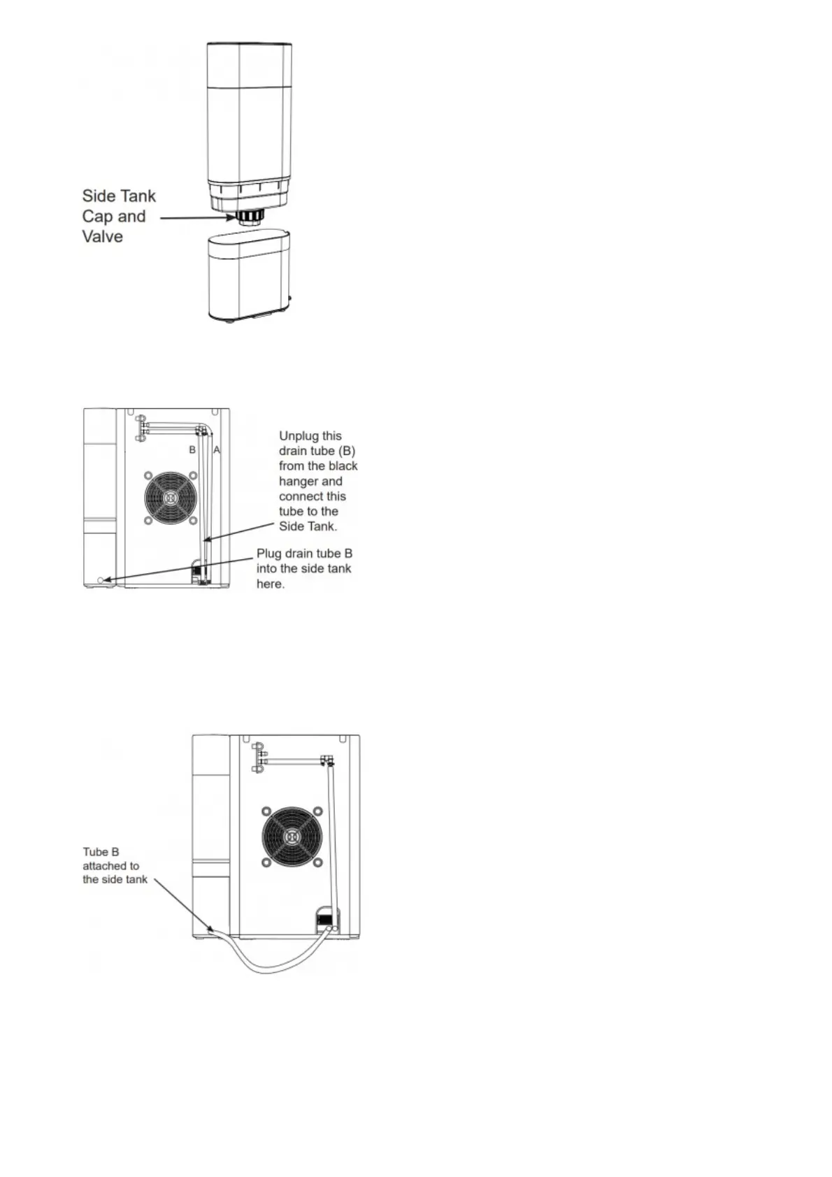 3. Connect drain tube, labeled B, to the back of Opal Side Tank’s base.