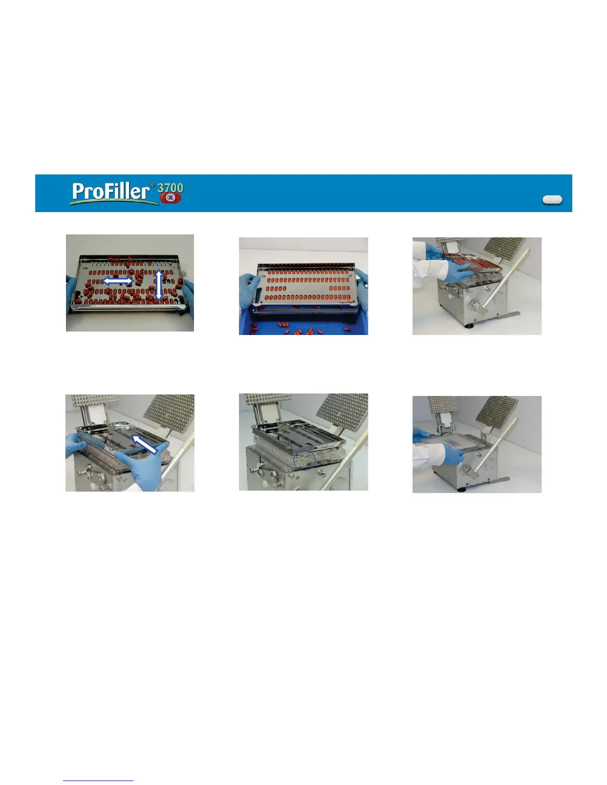 5. Tilt Caplet Tray to pour off excess caplets. 6. Place Caplet Tray on Caplet Orienter Base