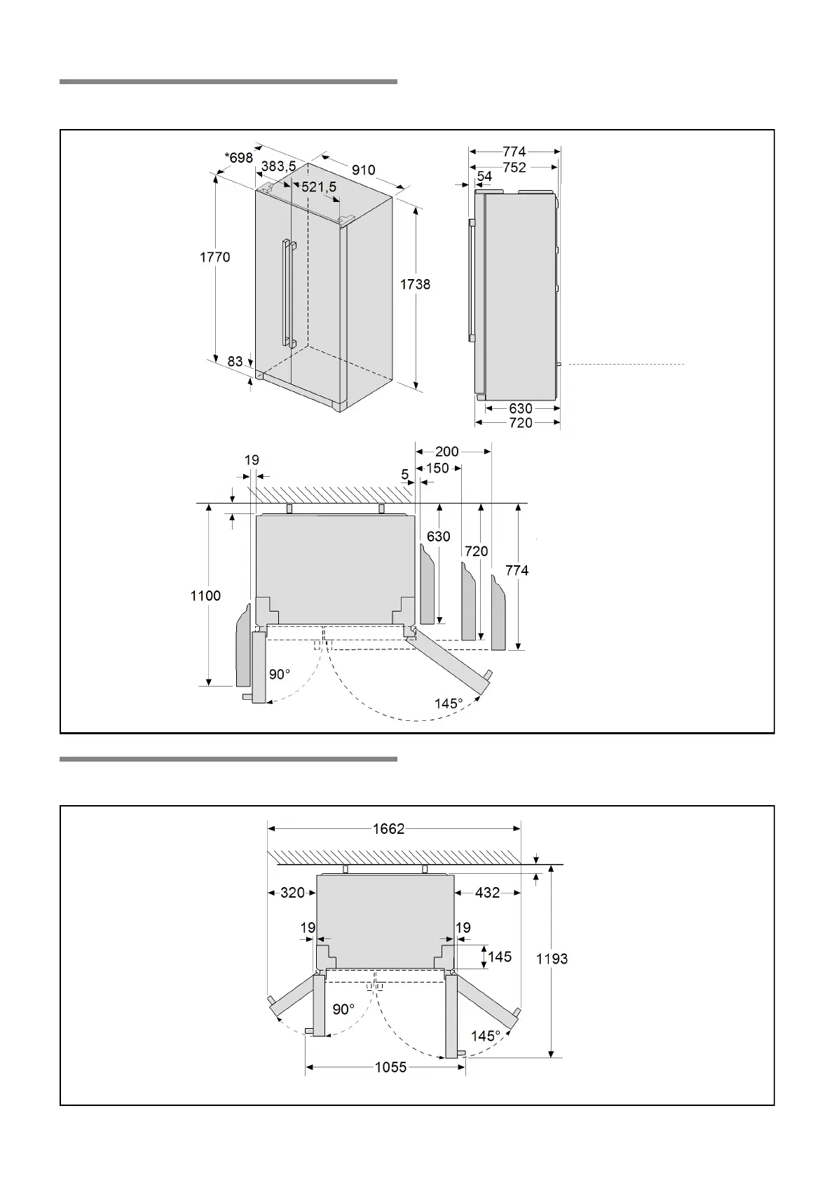 PROFILO BD4090I2VN - Aufstellmaße; Türöffnungswinkel