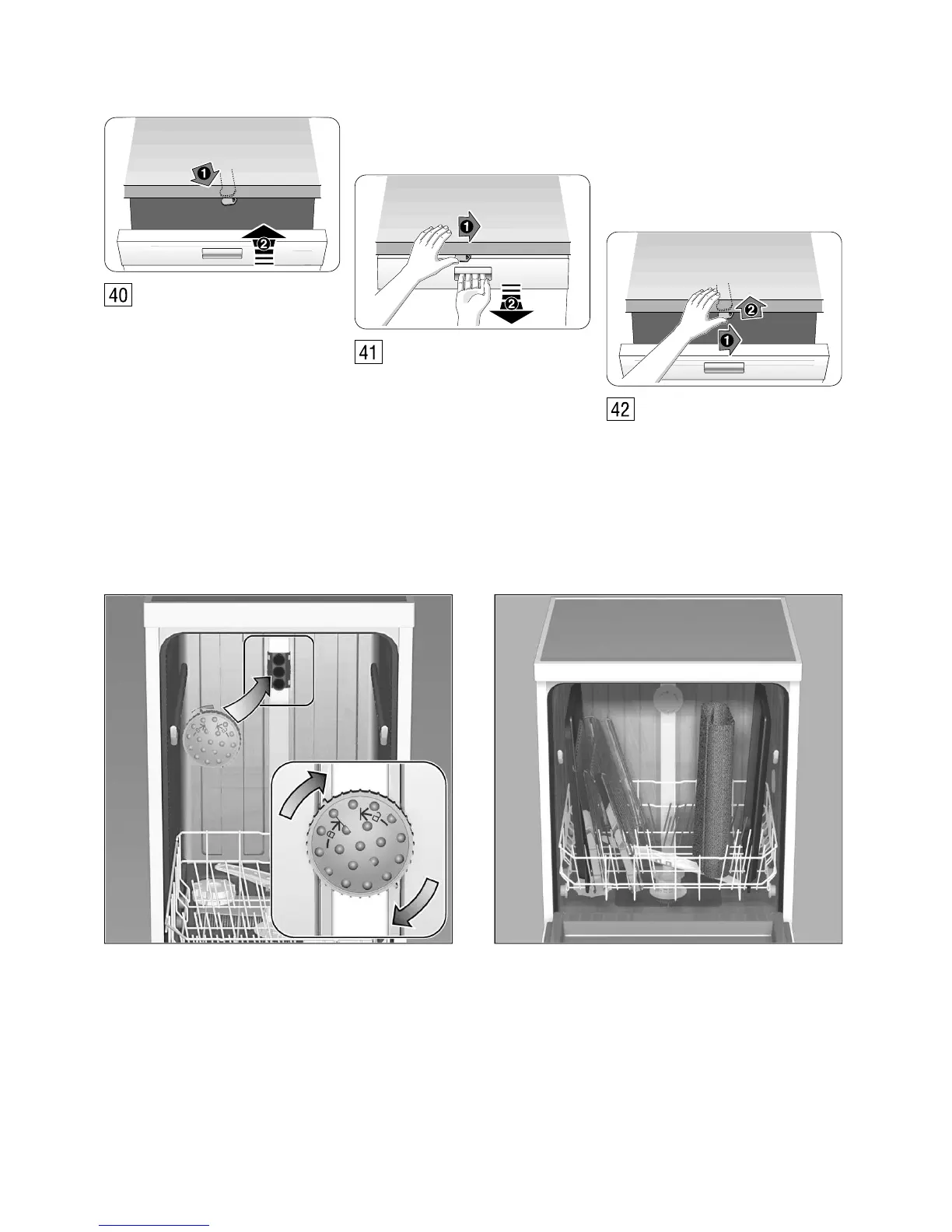 To do this, remove the top basket and insert the spray head as illustrated in the diagram.