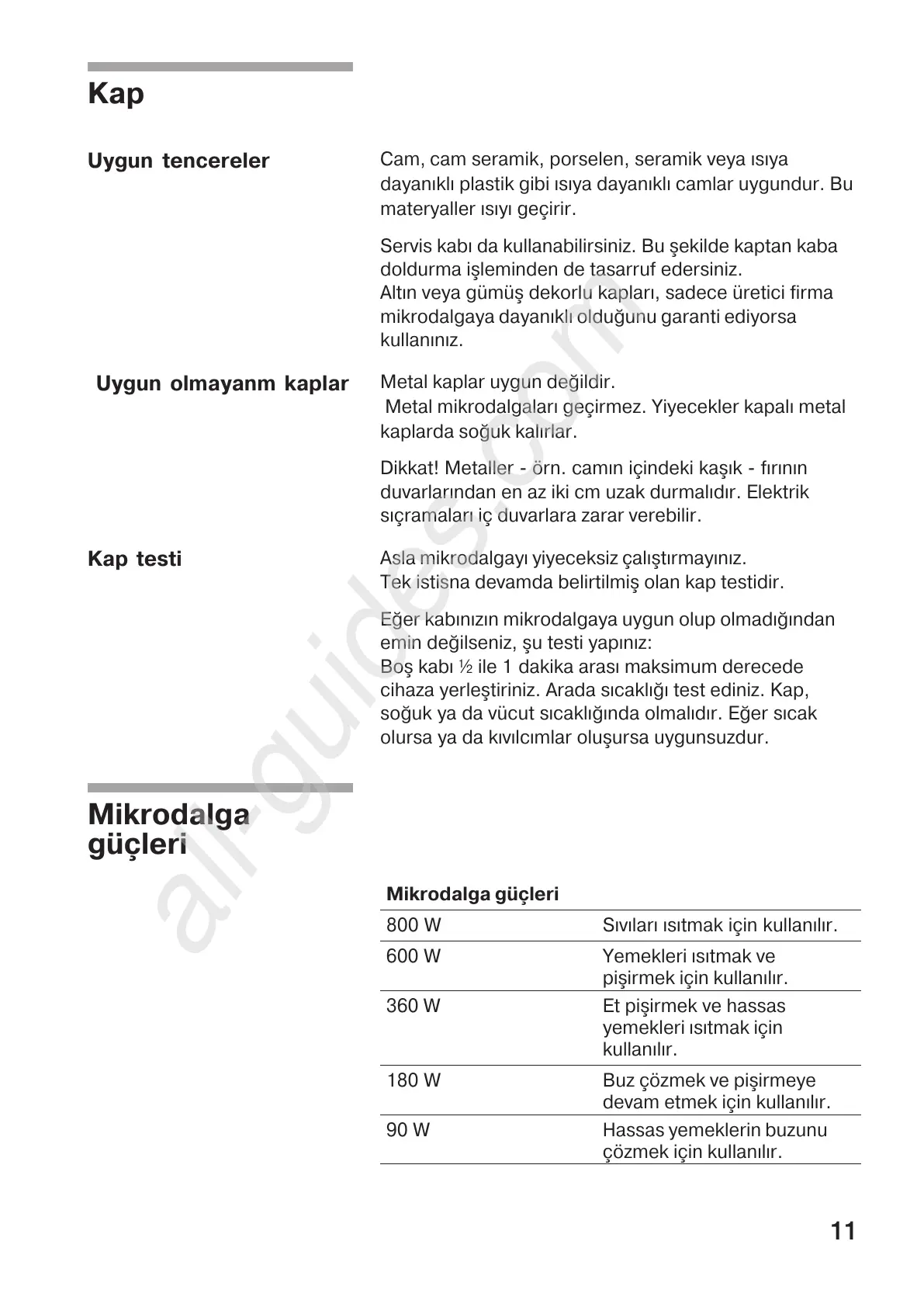PROFILO MD1000 - Kap; Mikrodalga Güçleri