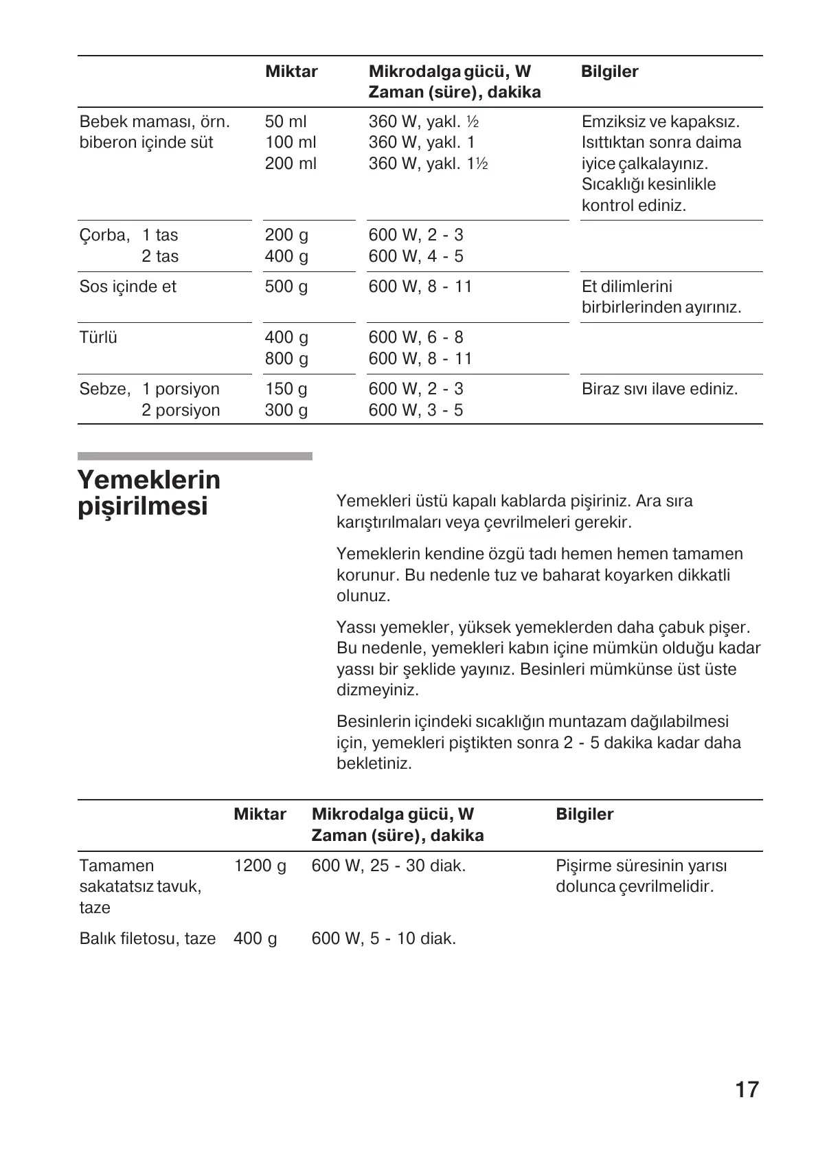 PROFILO MD1000 - Yemeklerin Piåirilmesi