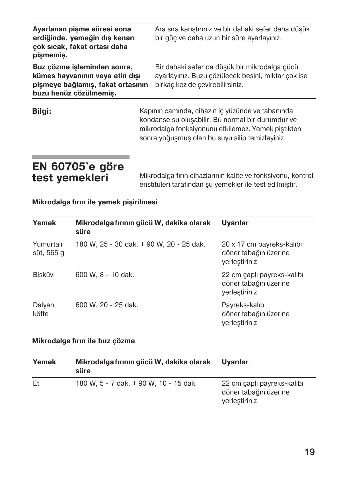 PROFILO MD1000 - EN 60705 E Göre Test Yemekleri