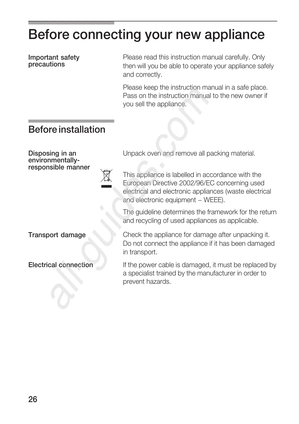 PROFILO MD1000 - Before Connecting Your New Appliance; Before Installation