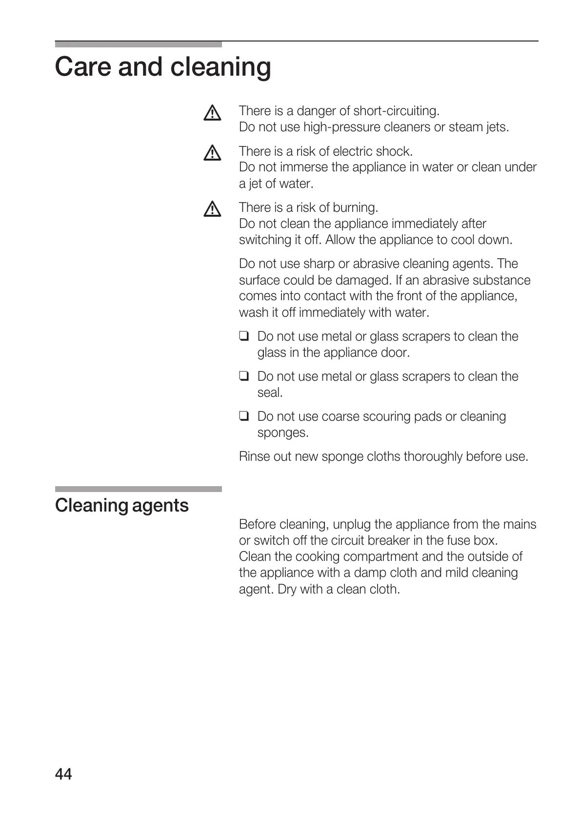 PROFILO MD1000 - Care and Cleaning; General Cleaning Precautions